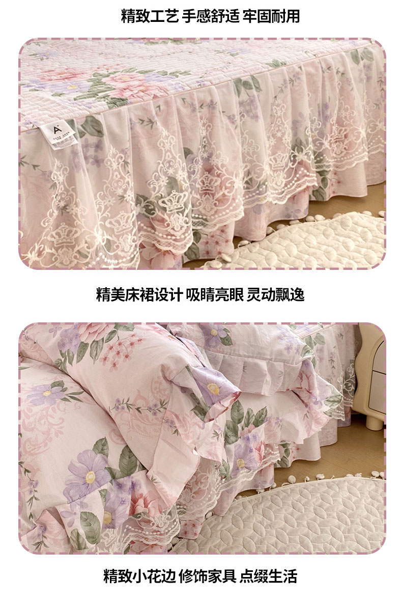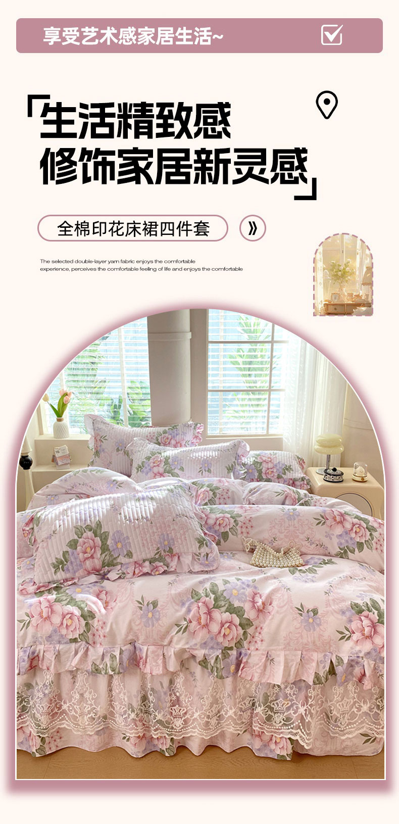 当前位置: 91家纺网 > 商品网购 > 床品套件 > 四件套 > 全棉普通四件套 > 乐逸家纺 2025新款100%纯棉全棉印花法式风情蕾丝花边床裙床盖款四件套 玫瑰风情-蓝