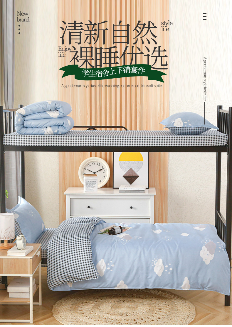 友承家纺 学生宿舍三件套芦荟棉三件套上下铺,期待,初遇,海豚湾,欢乐狗米,吉祥鹿兰,鲸鱼,恋爱味道,慕尼黑,深海情缘,淘气猫兰,淘气猫绿,网红雏菊兰,网红雏菊绿,小可爱,小恐龙,星空之约,富士山下,云朵,蓝大格,字母熊米,幸运花,爱心小熊