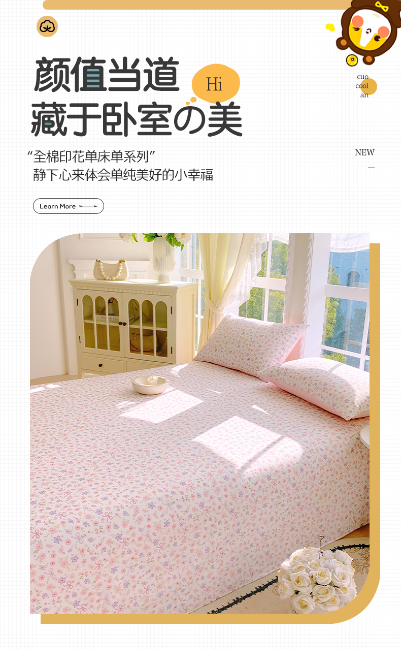(总)小懒猪 2026全棉纯棉印花单床单床单单件,铂格纹,粉喵甜梦,蓝调喵趣,蓝灰格絮,蓝絮银织,柳色衫林,漫彩花韵,淡紫花屹,喵语时光,墨旋,沐风苍兰,青蔓花盏,清棱,森屹兔眠,素环影,素律,童梦汪旅,雾蓝花簇,线影轻痕,星兔软糖,元气熊仔,紫粉花漾