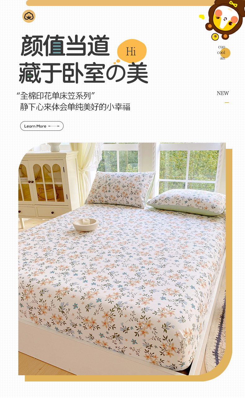 • 91家纺网 家纺一手货源 找家纺 小懒猪 2026新款全棉印花床笠 沐风苍兰