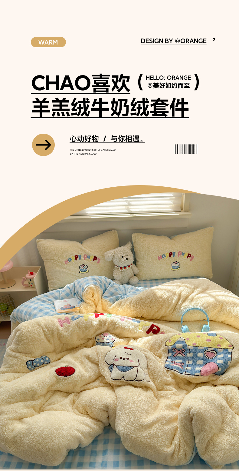 当前位置: 91家纺网 > 商品网购 > 床品套件 > 四件套 > 牛奶绒四件套 > 欣宜家纺 2025新款ins风200克羊羔绒毛巾绣牛奶绒四件套加厚保暖床单被套宿舍三件套 萌宠猫