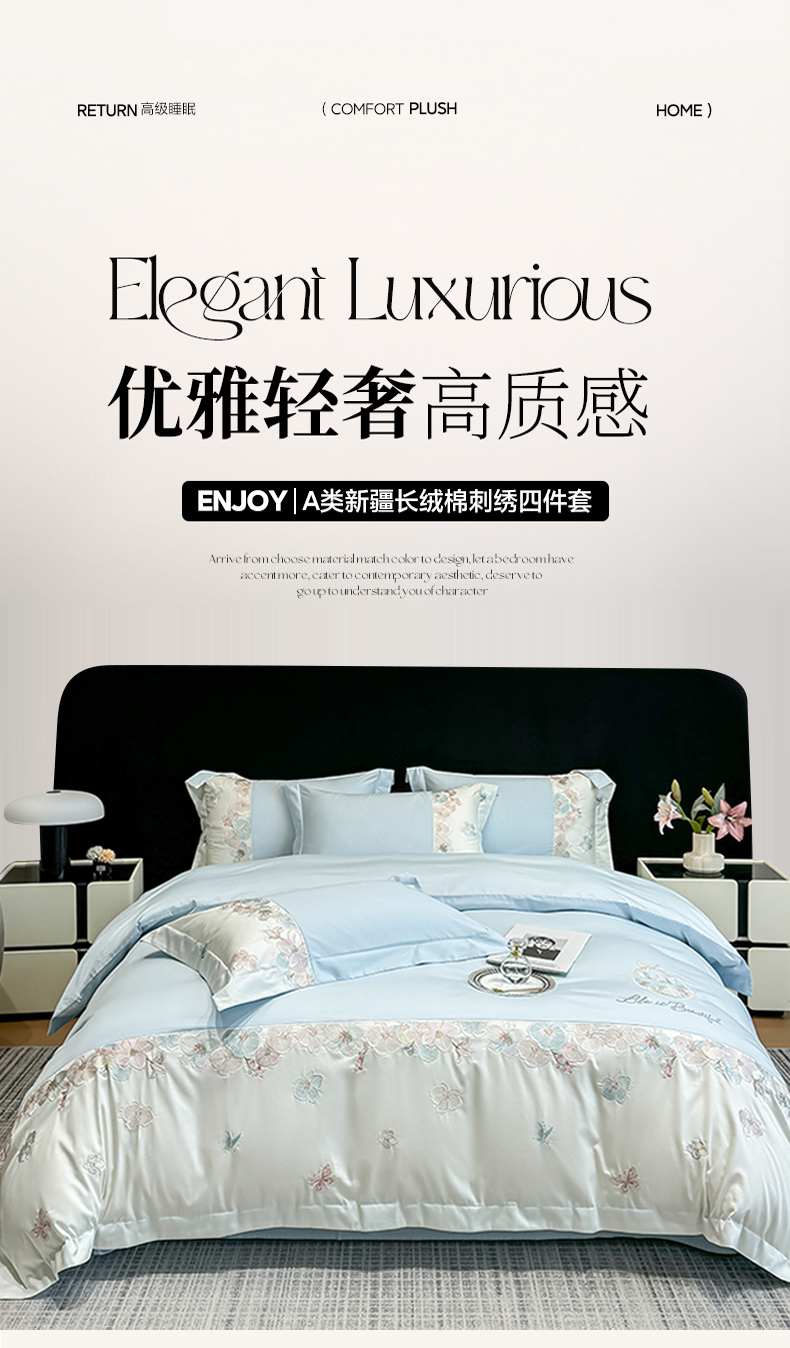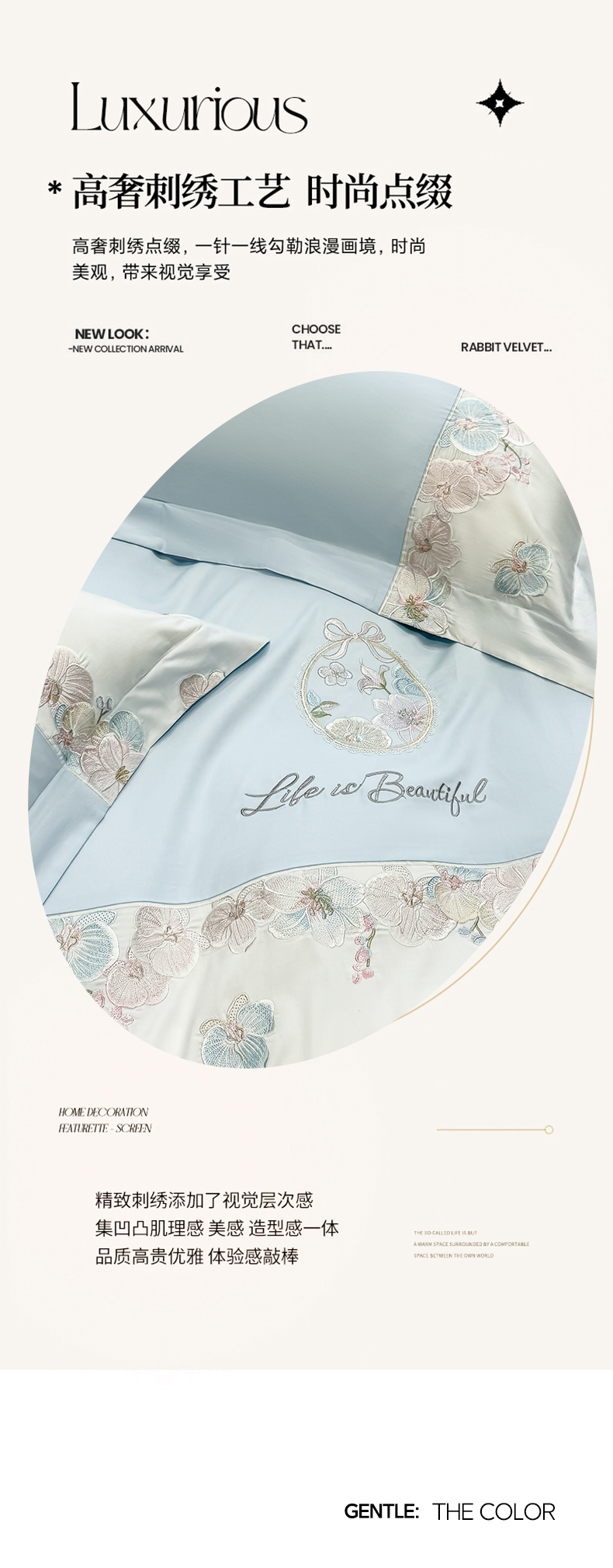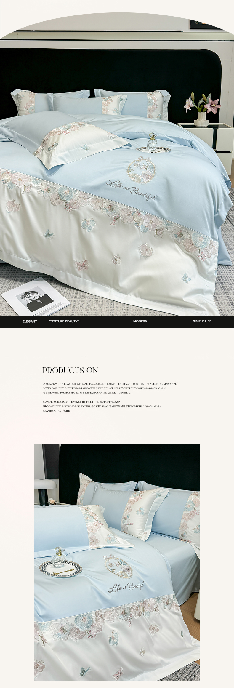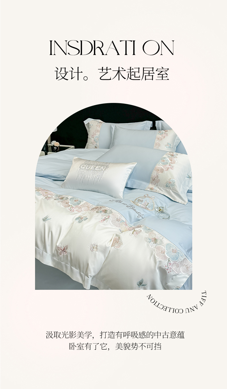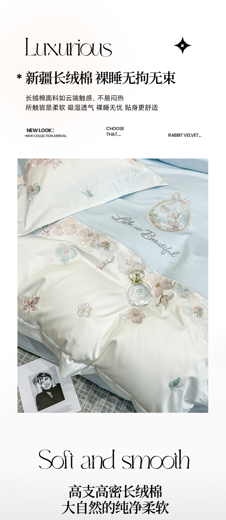 欣宜家纺 2026春夏新款A类60支长绒棉刺绣四件套--蝶纷飞系列 蝶纷飞-蓝