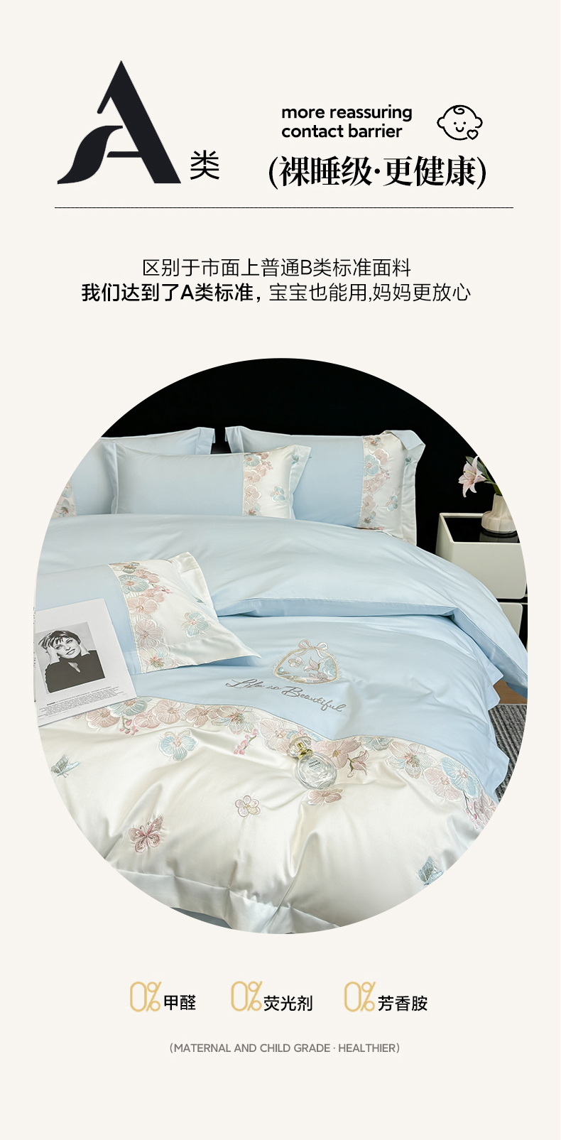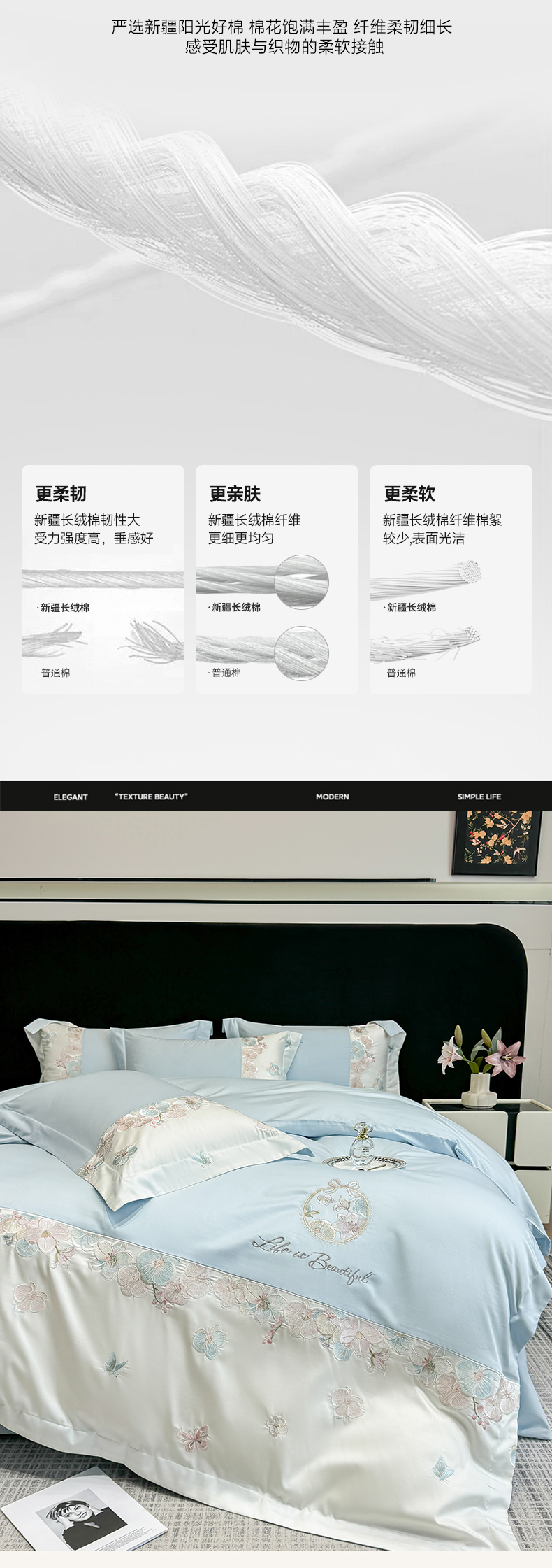 (总)欣宜家纺 2026春夏新款60支A类新疆长绒棉刺绣轻奢风四件套,樱花-白粉,樱花-清香绿,樱花-少女粉,樱花-天天蓝,樱花-香芋紫