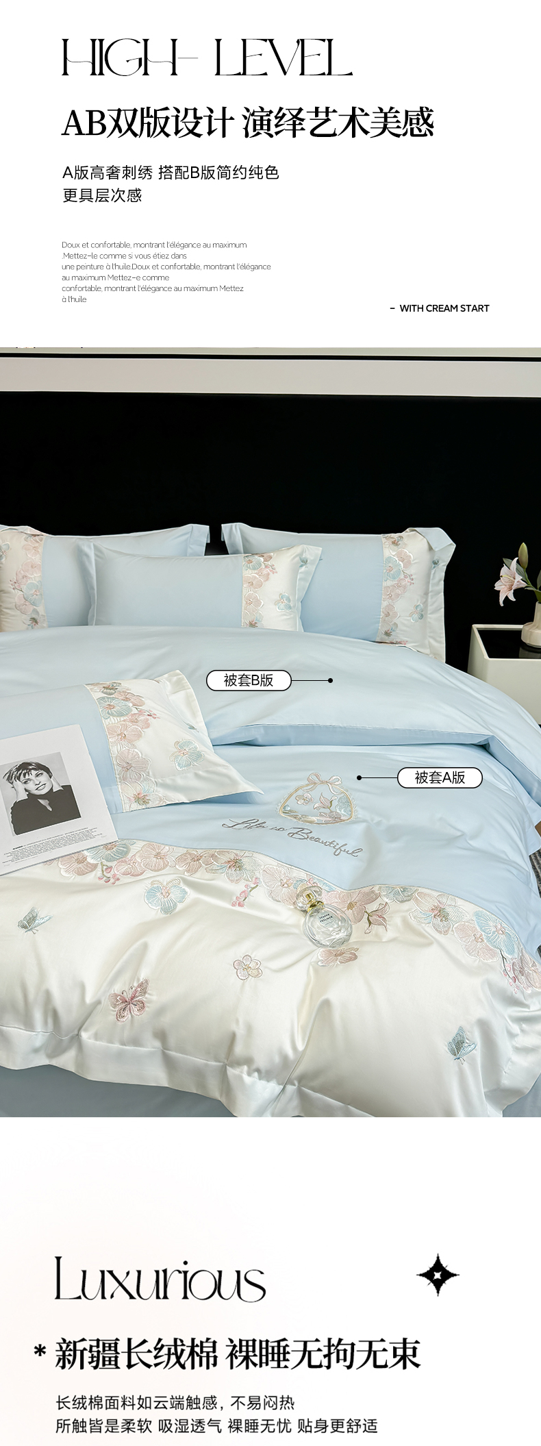 (总)欣宜家纺 2026春夏新款60支A类新疆长绒棉刺绣全棉四件套纯棉床品套件,玛丽-香芋紫,玛丽-梦幻蓝,玛丽-奶白,玛丽-轻奢粉,玛丽-石灰