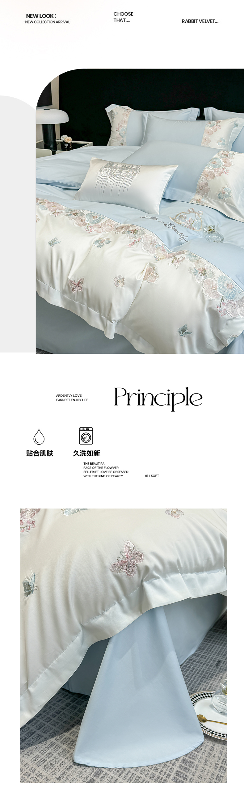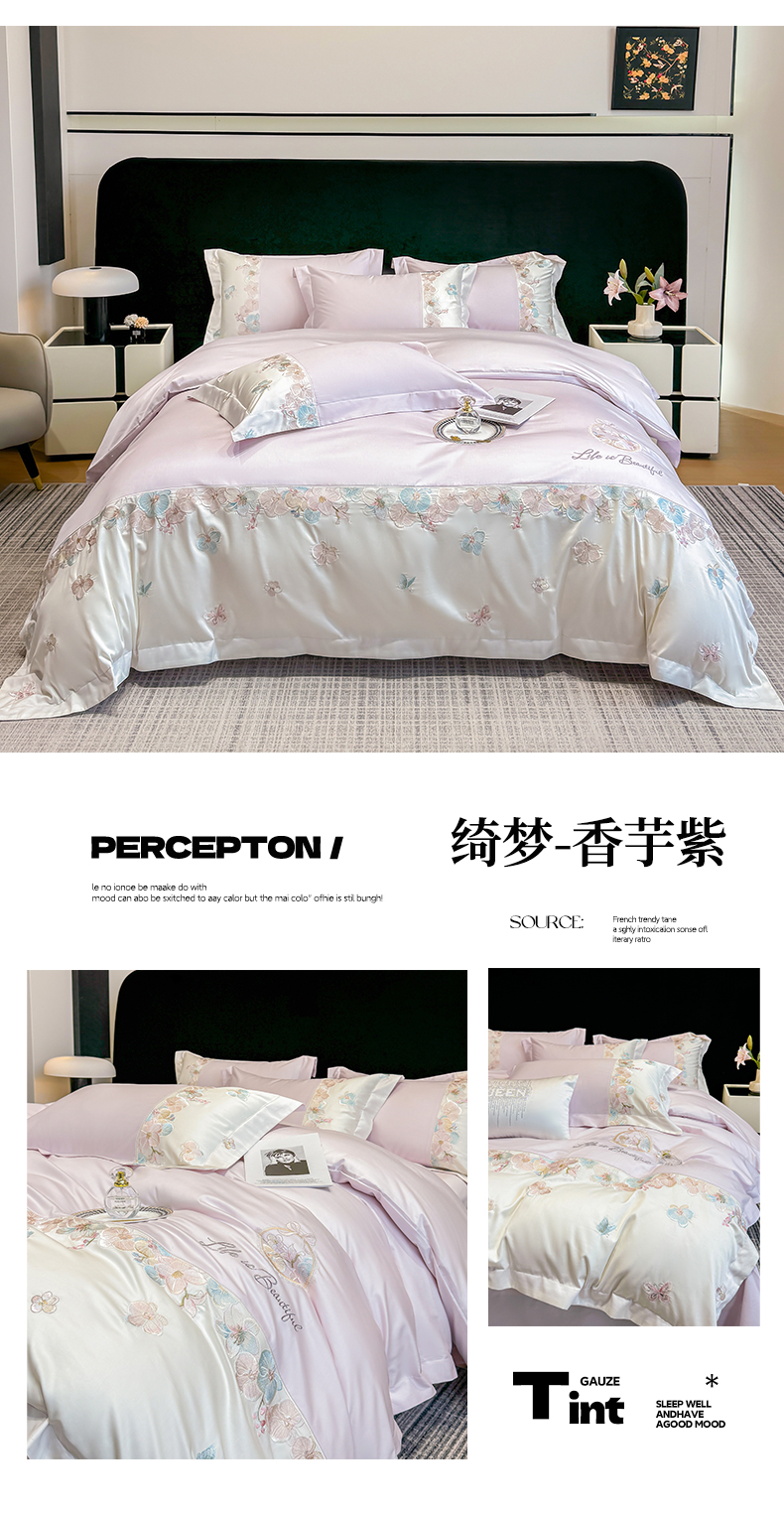 (总)欣宜家纺 2026春夏新款A类60支长绒棉刺绣四件套--蝶纷飞系列,蝶纷飞-粉,蝶纷飞-紫,蝶纷飞-蓝,蝶纷飞-绿