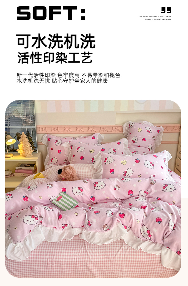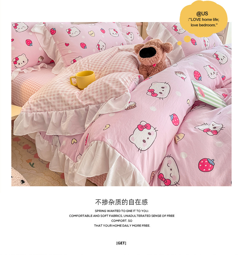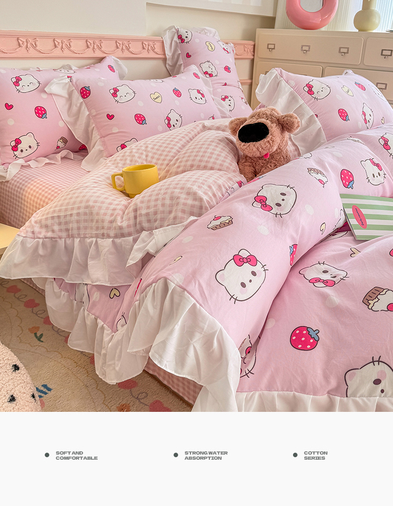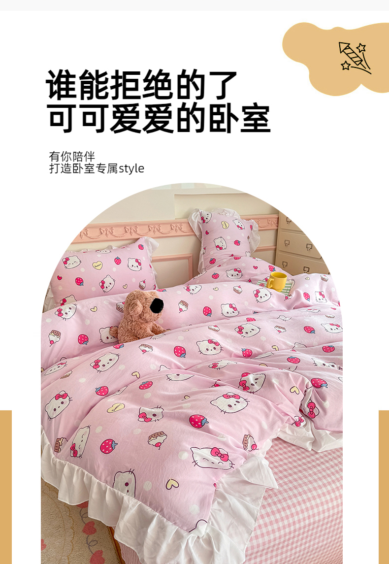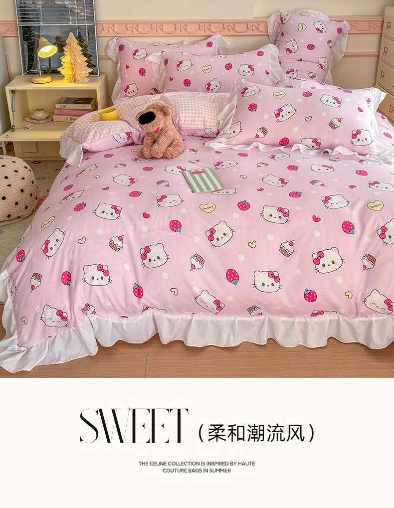 当前位置: 91家纺网 > 商品网购 > 床品套件 > 四件套 > 水洗棉四件套 > 温眠家纺 2025新款水洗云朵棉韩式INS减龄花边款四件套 草莓猫咪