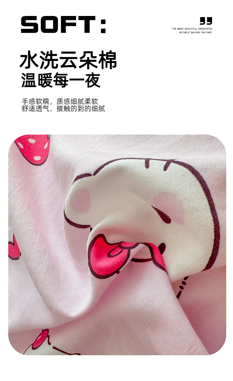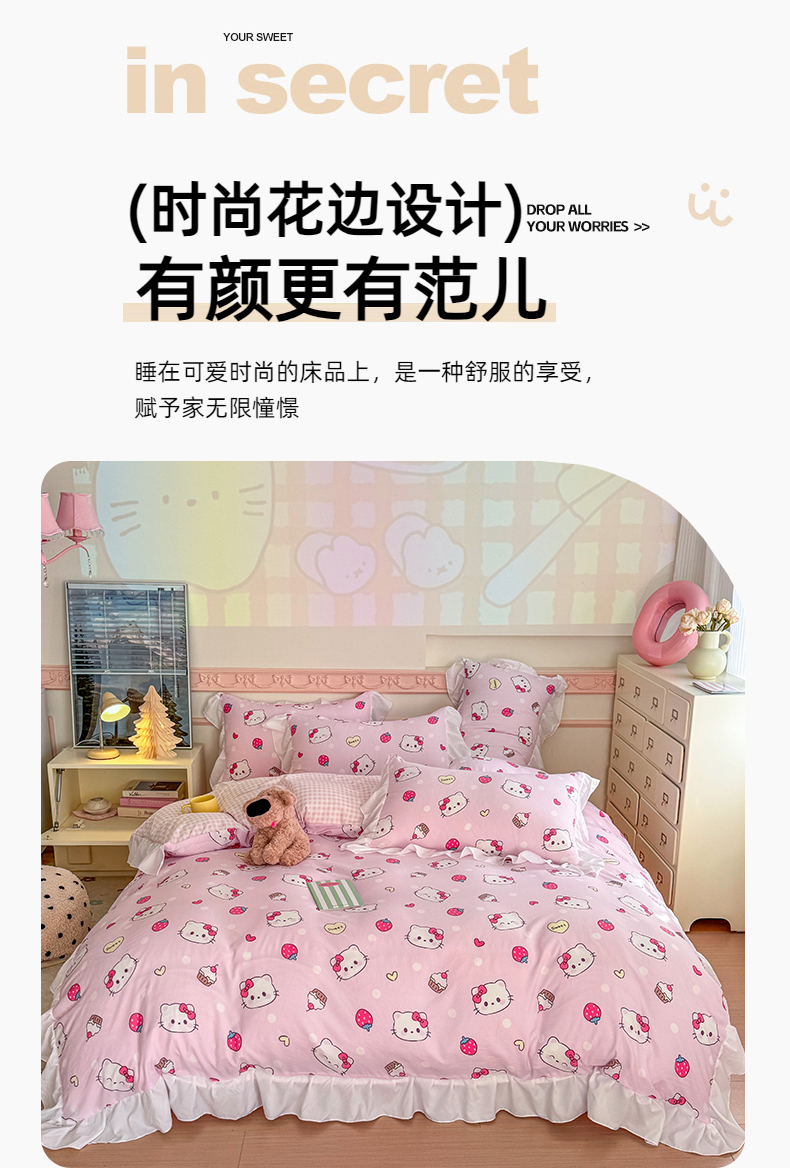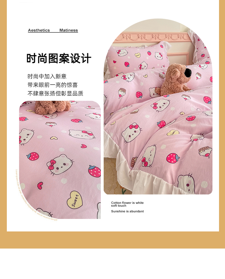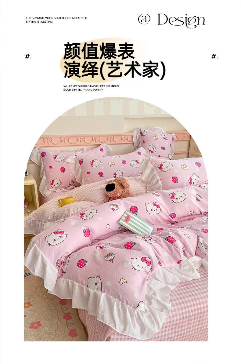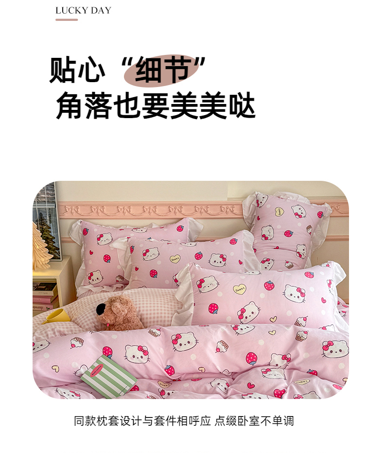 当前位置: 91家纺网 > 商品网购 > 床品套件 > 四件套 > 水洗棉四件套 > 温眠家纺 2025新款水洗云朵棉韩式INS减龄花边款四件套 草莓猫咪