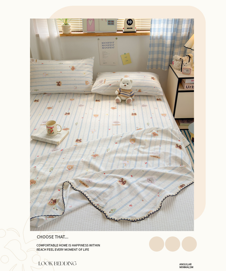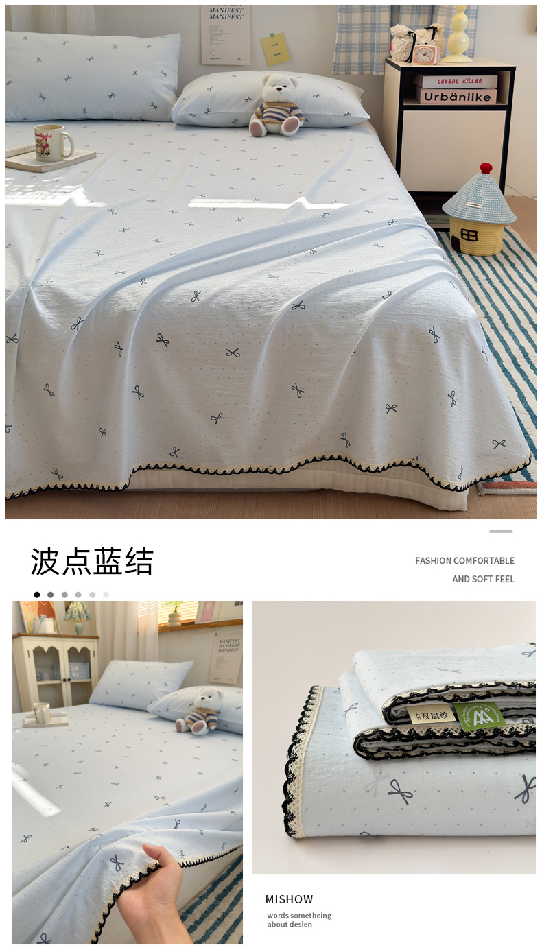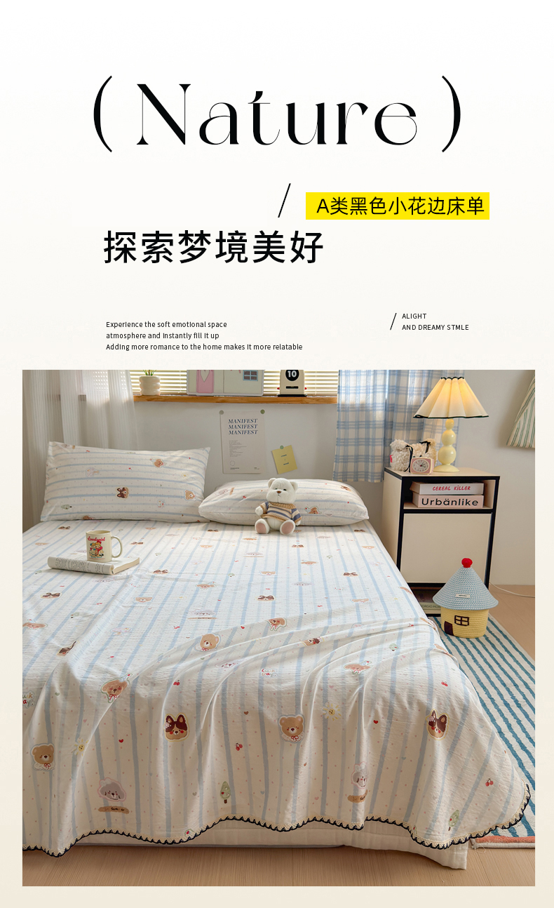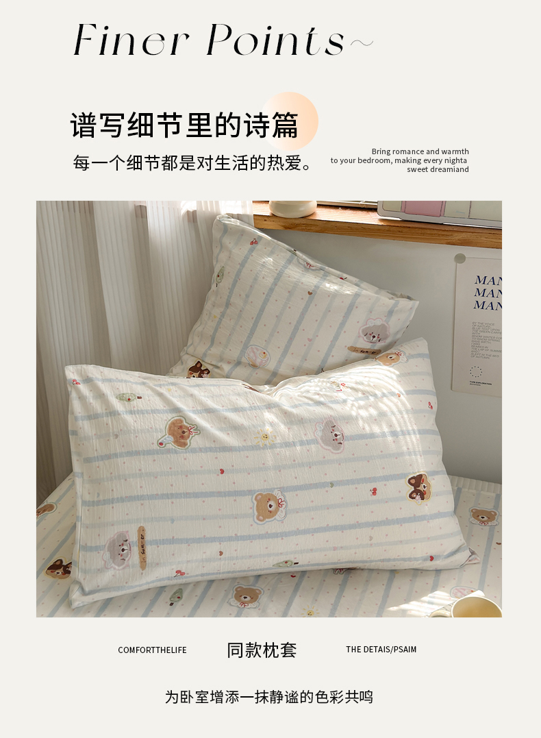 (总)沐芷 2026 【提供买家秀】A类单床单古法水洗仿棉 单人双人床单三件套,甜梦糖豆,星仔,巴黎甜心,白月光,豹纹音乐,波点汪语,彩虹跳跳糖,漫游小鱼,萌犬游记,萌物,迷你格-黄,迷你格-蓝,奶味圆饼,暖意小熊,樱桃物语