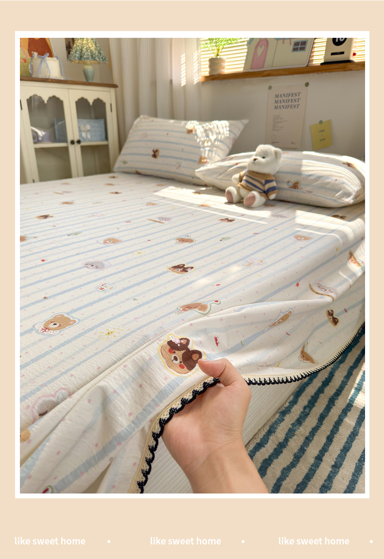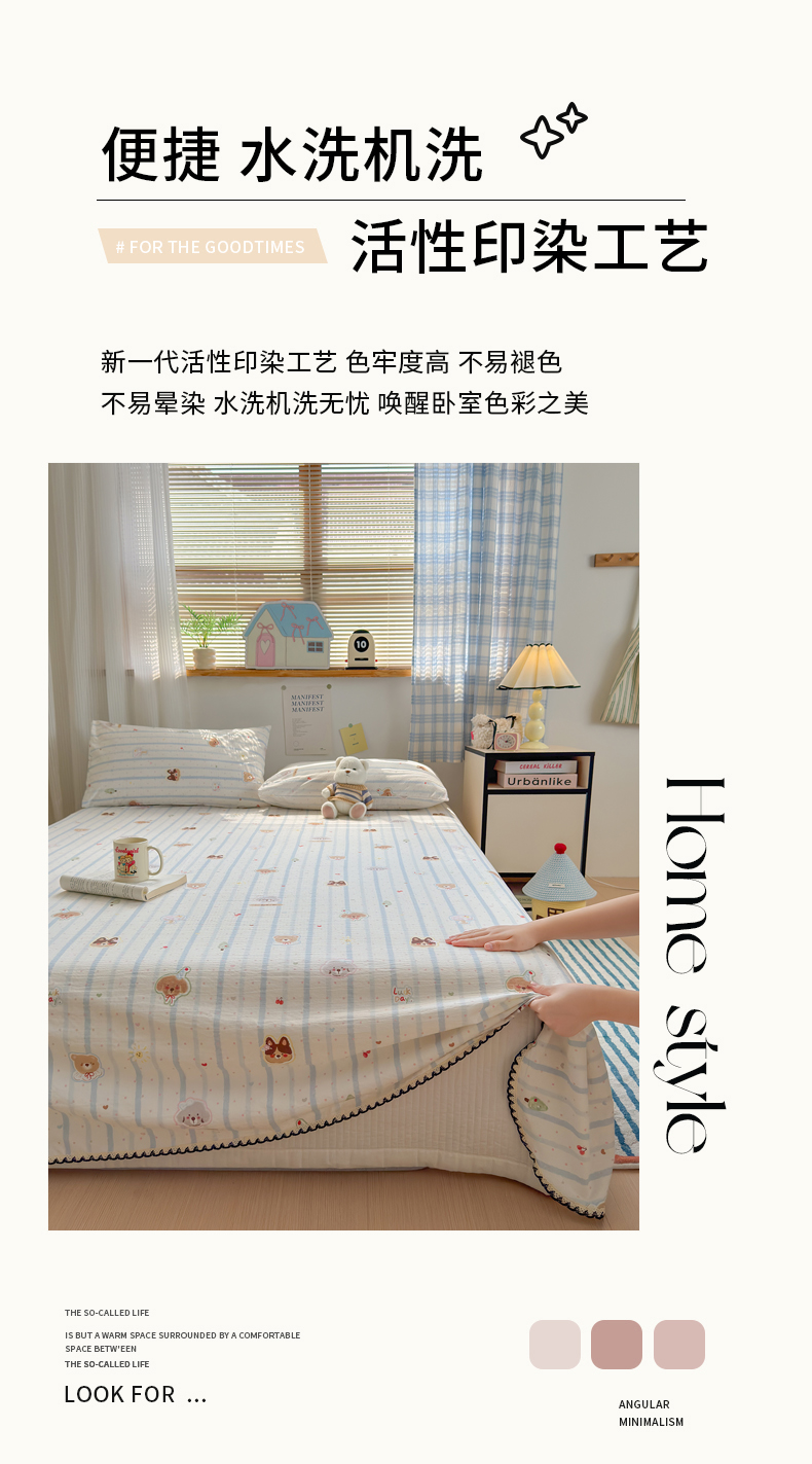 (总)沐芷 2026 【提供买家秀】古法水洗仿棉床笠席梦思床罩床垫防滑床套罩床笠三件套,萌物,甜梦糖豆,巴黎甜心,白月光,豹纹音乐,波点汪语,彩虹跳跳糖,漫游小鱼,萌犬游记,迷你格-黄,迷你格-蓝,奶味圆饼,暖意小熊,星仔,樱桃物语,组合图