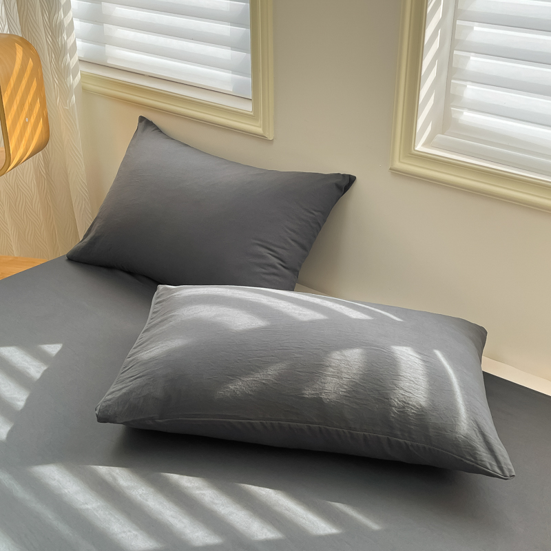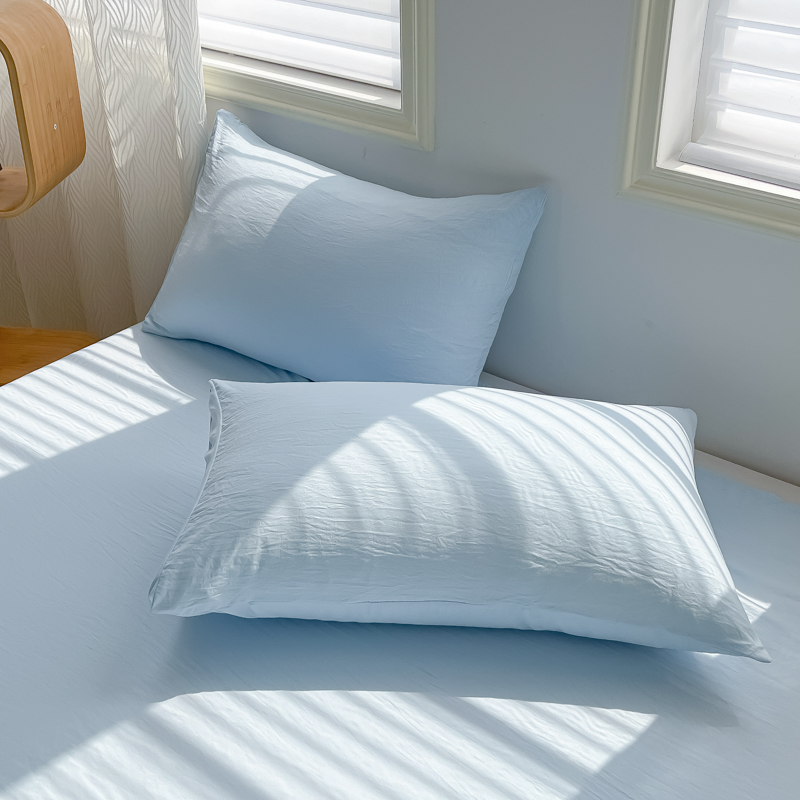 商品名称:温眠家纺 2025新款水洗棉色织单床单系列-单枕套 迷雾蓝