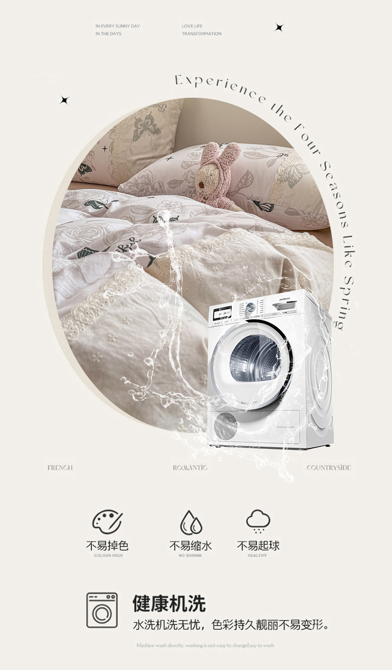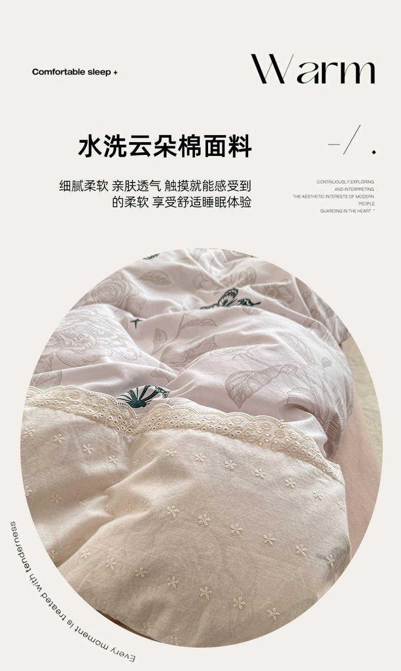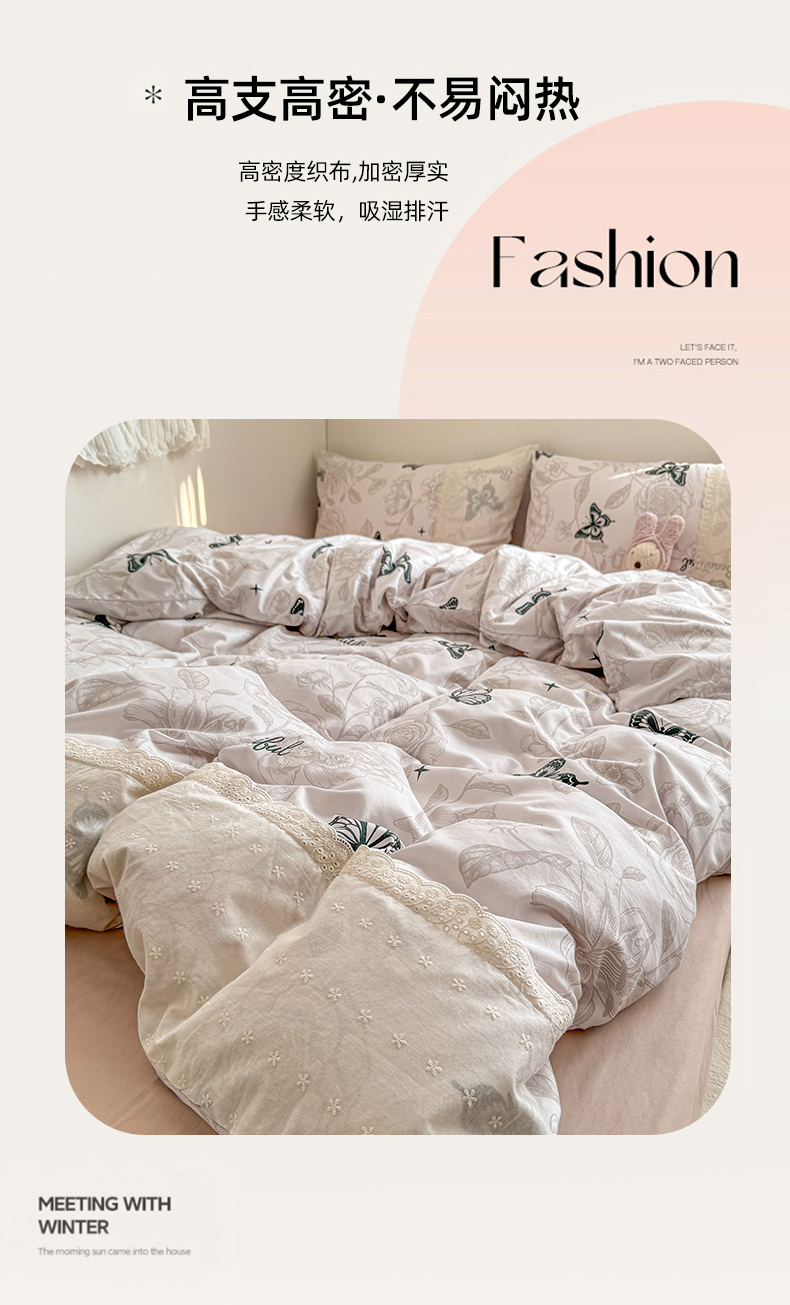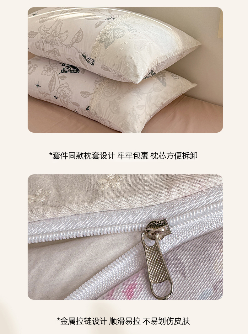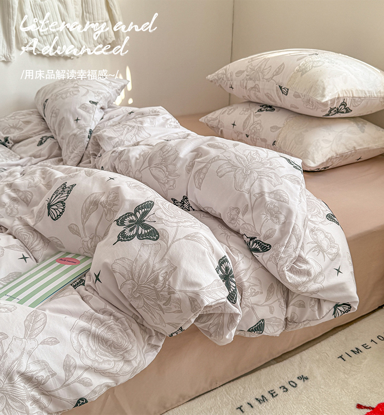 当前位置: 91家纺网 > 商品网购 > 床品套件 > 四件套 > 水洗棉四件套 > 温眠家纺 2025新款ins风小清新镂空花边水洗云朵棉四件套-风格二 蝶恋花