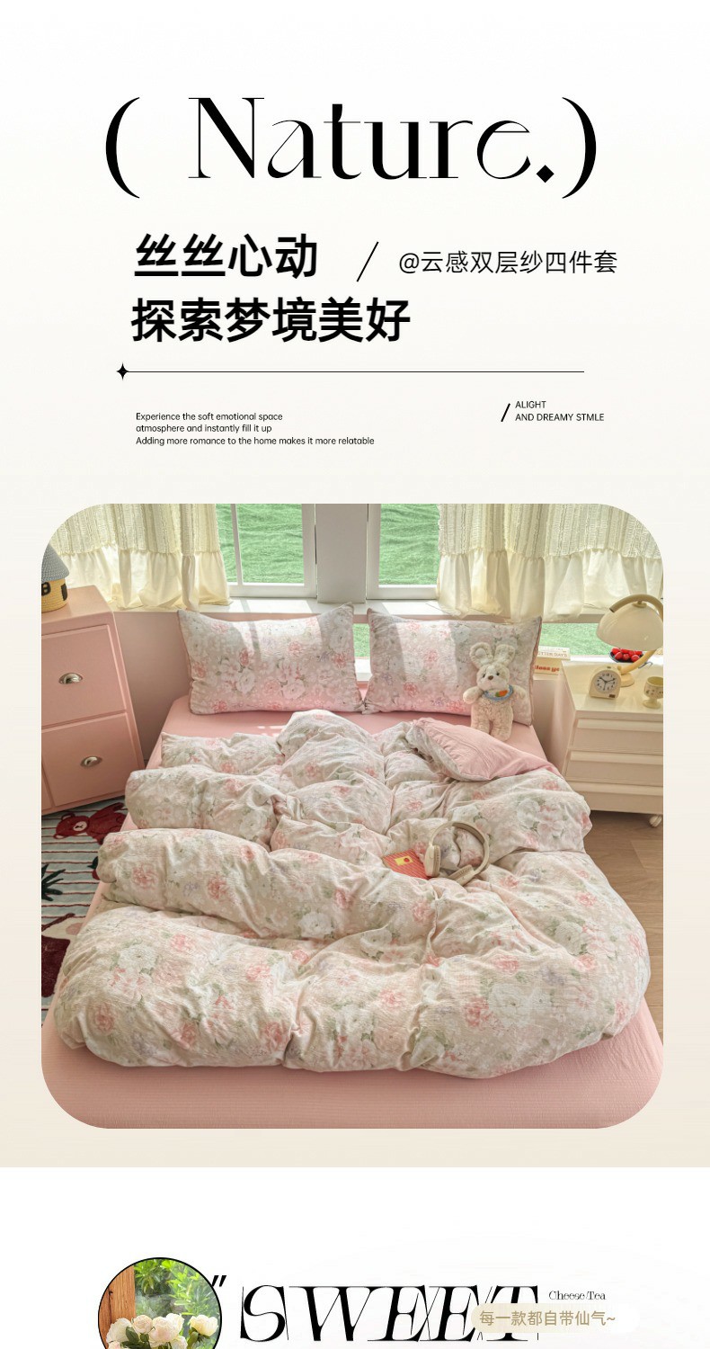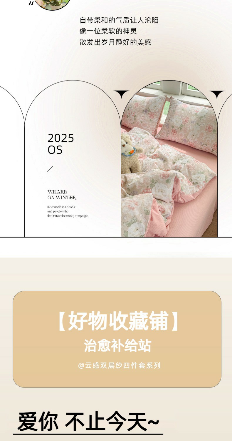 当前位置: 91家纺网 > 商品网购 > 床品套件 > 四件套 > 双层纱四件套 > 温眠家纺 2025新款云感针织双层纱四件套 絮语