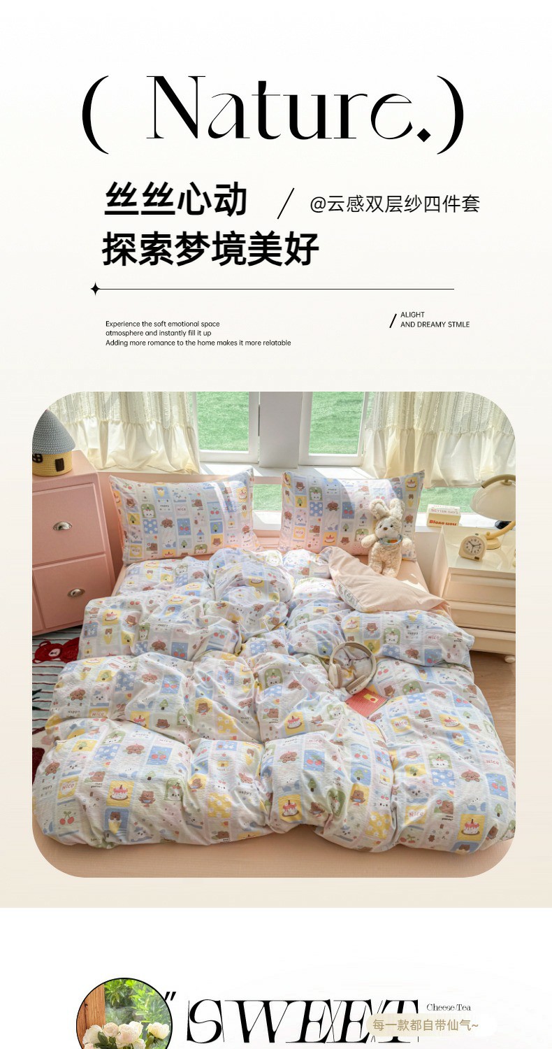当前位置: 91家纺网 > 商品网购 > 床品套件 > 四件套 > 双层纱四件套 > 温眠家纺 2025新款云感针织双层纱四件套 梵高