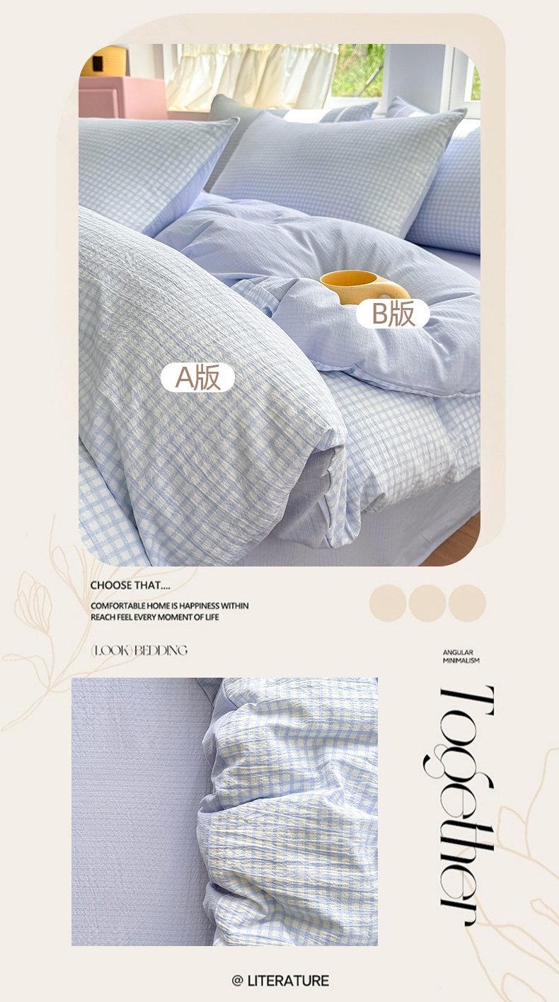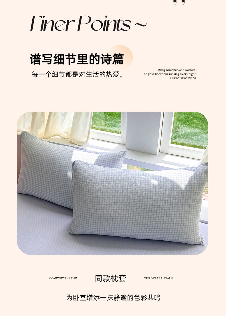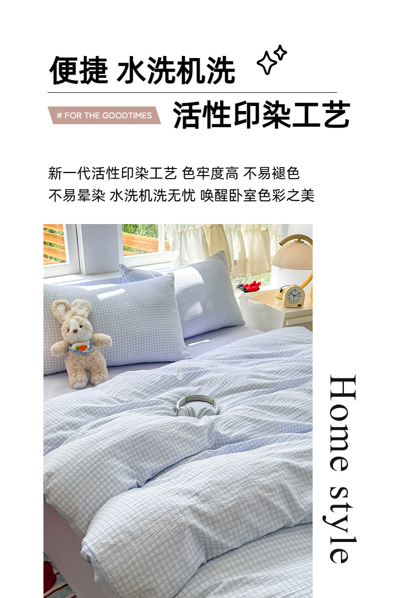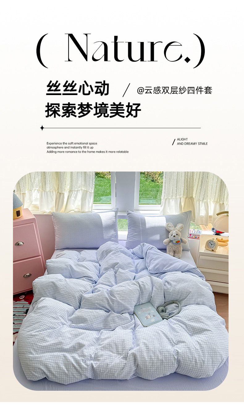 当前位置: 91家纺网 > 商品网购 > 床品套件 > 四件套 > 双层纱四件套 > 温眠家纺 2025新款活性印染云感针织双层纱四件套 蓝小格