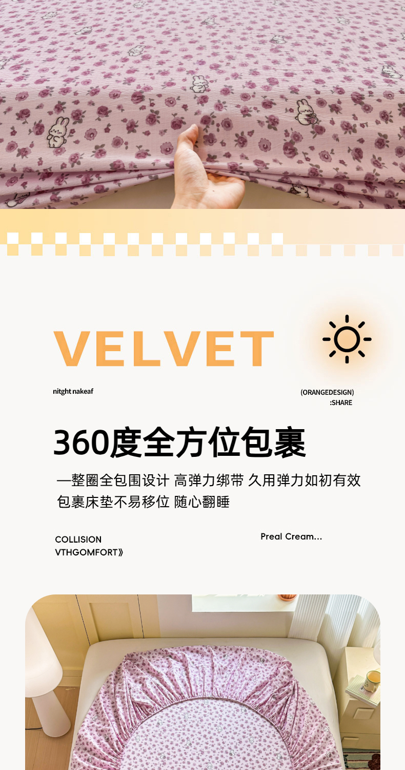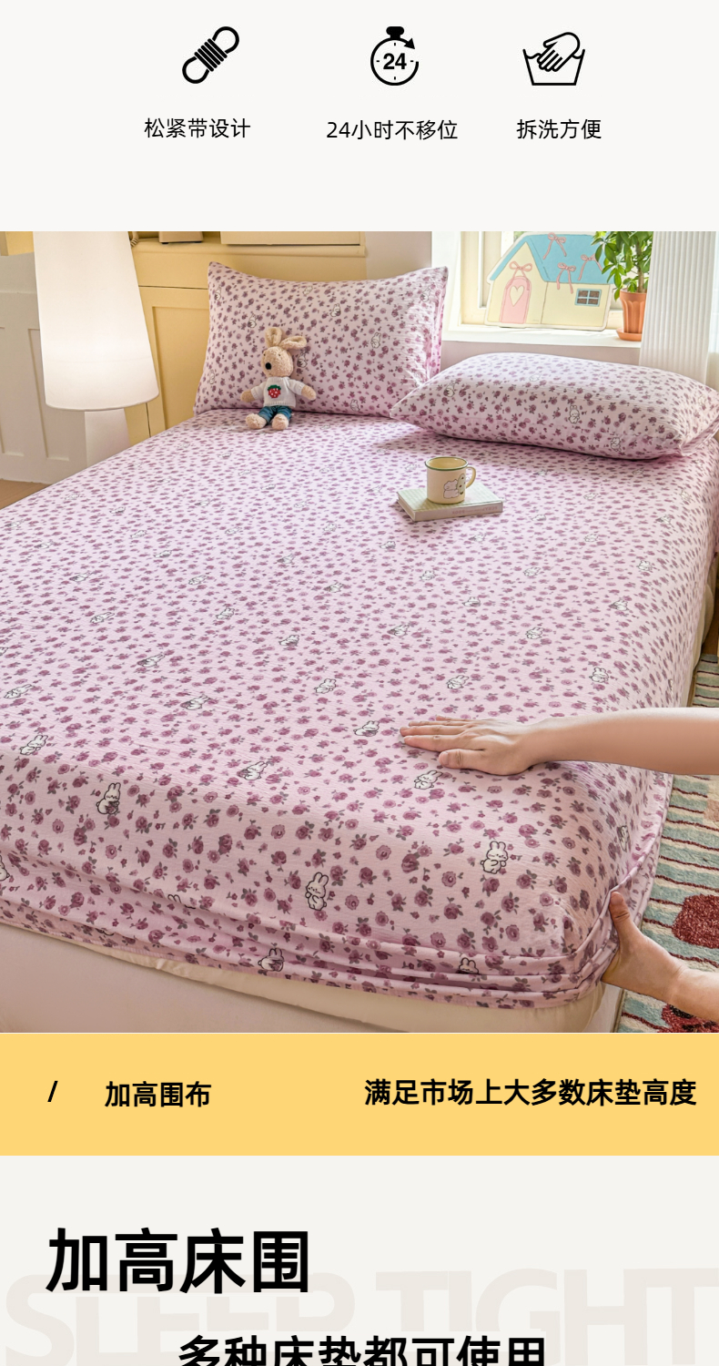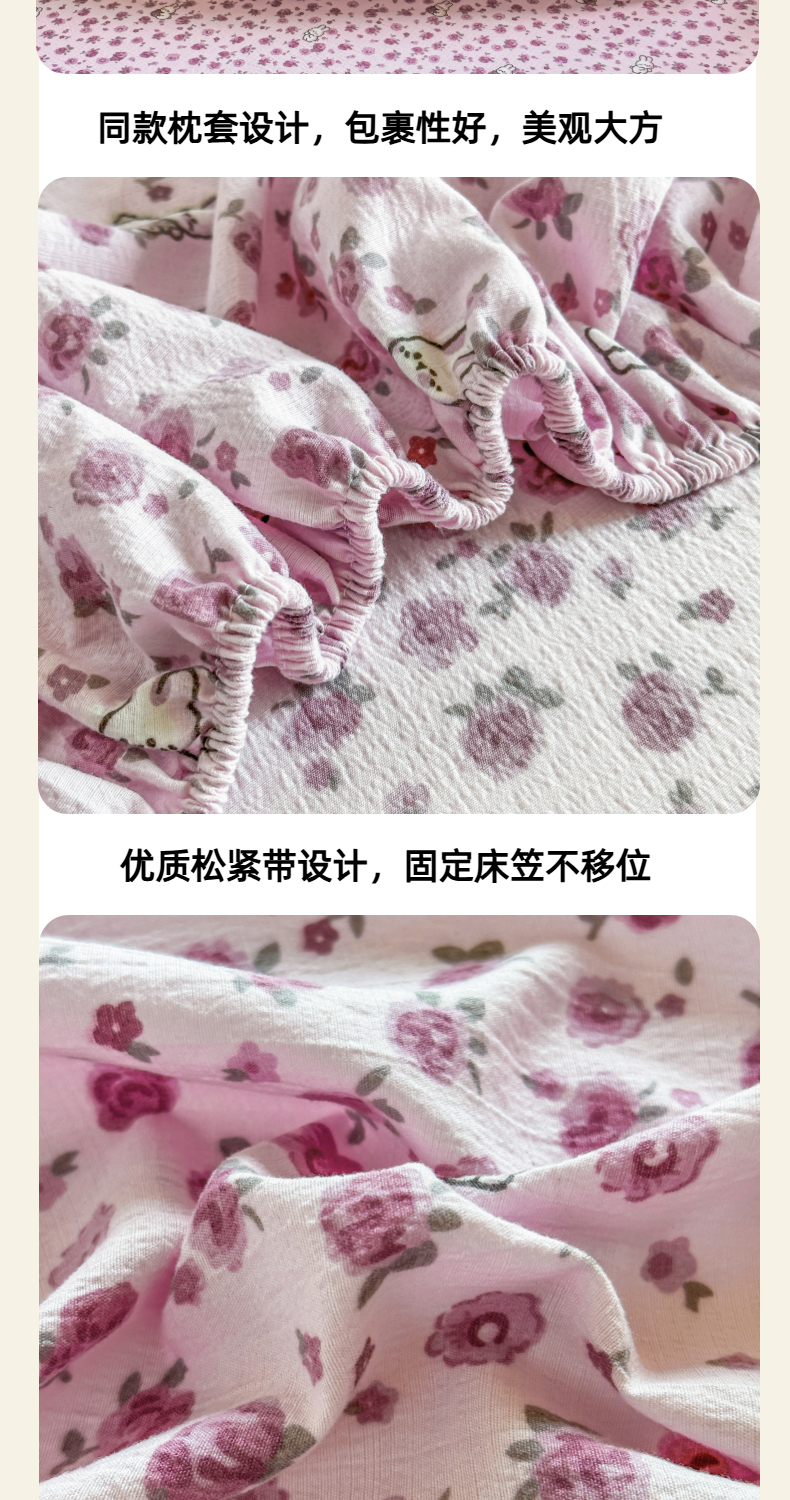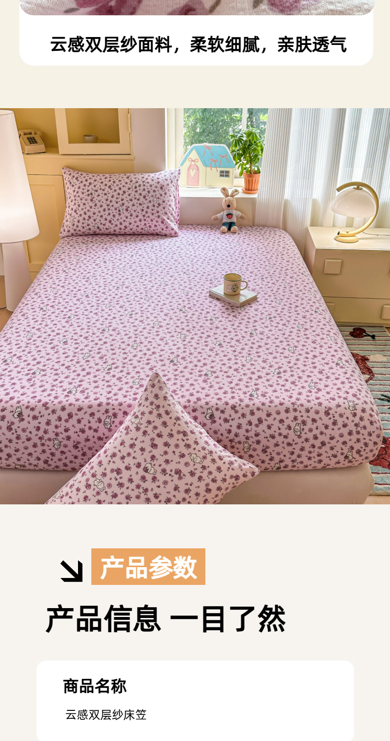 商品名称:温眠家纺 2025新款云感皱皱双层纱床笠 甜兔碎花