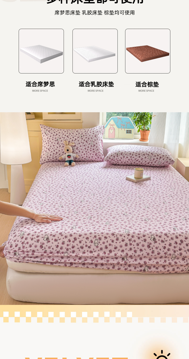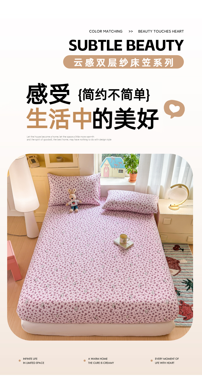温眠家纺 2025新款云感皱皱双层纱床笠 甜兔碎花