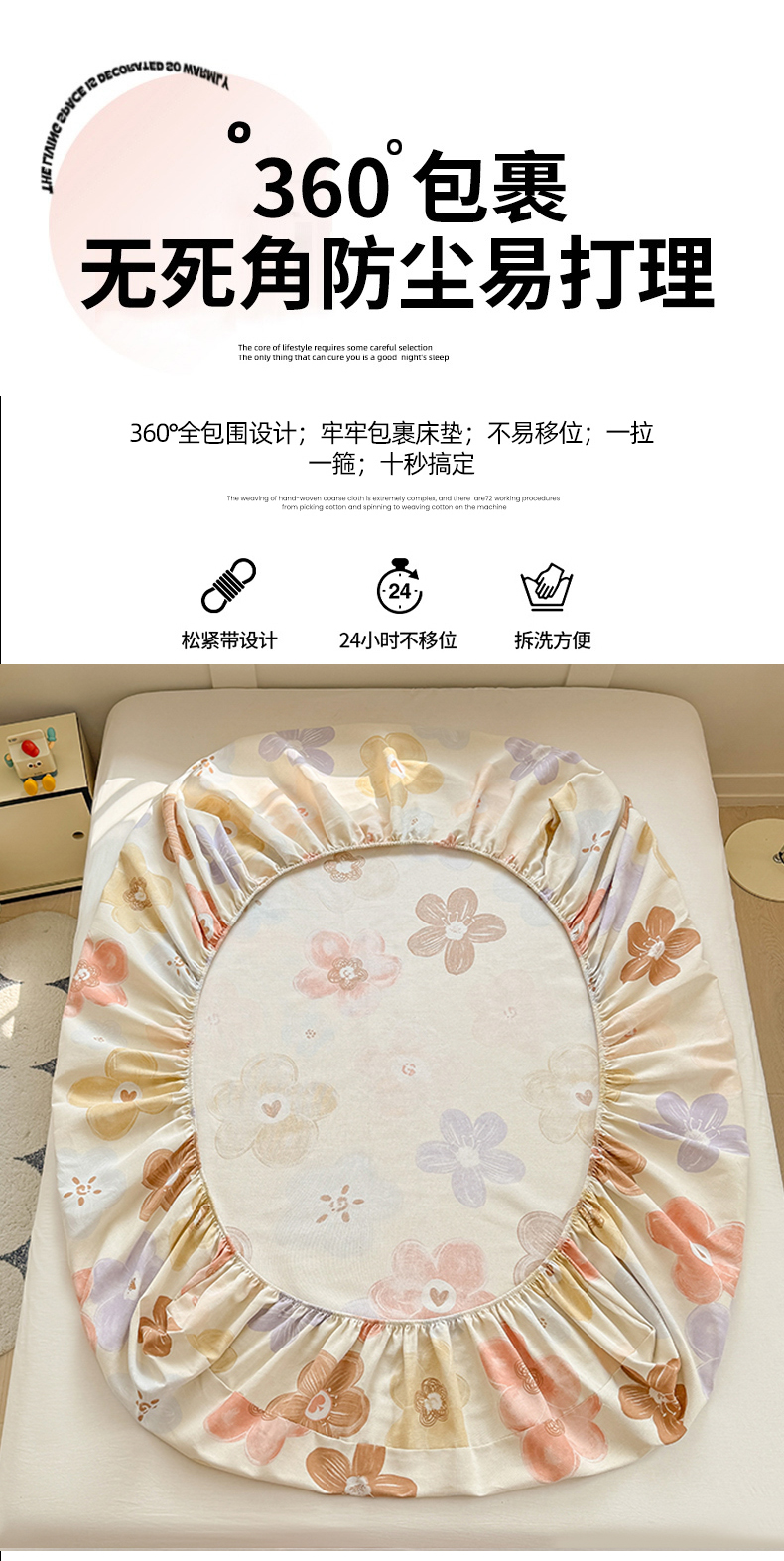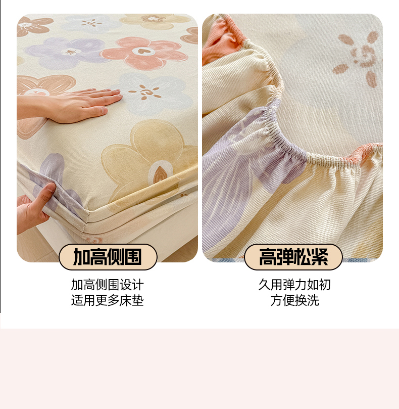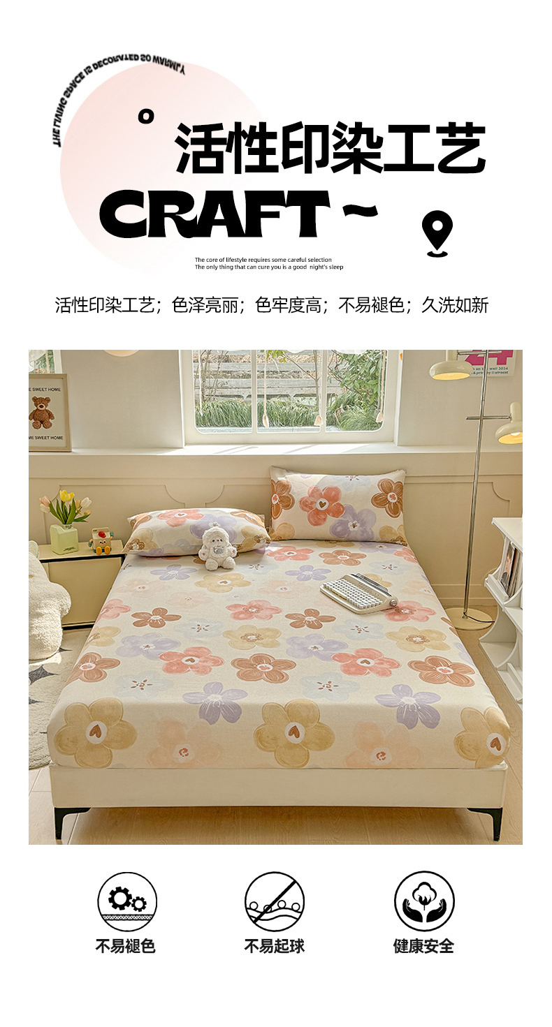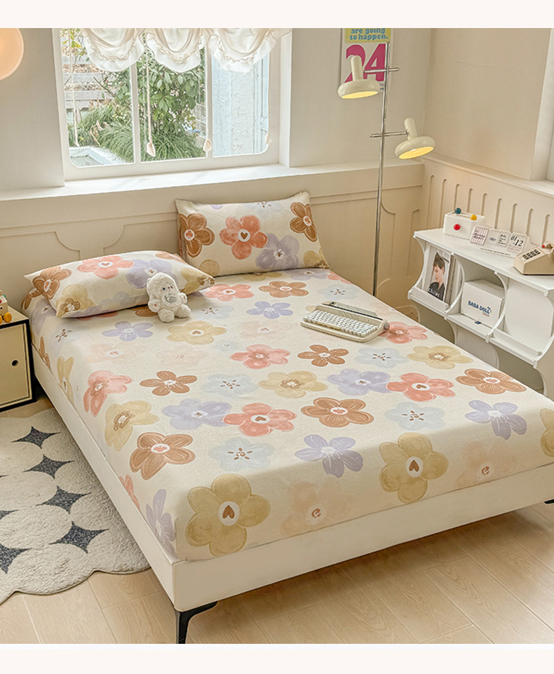 • 91家纺网 家纺一手货源 找家纺 爱彼家纺 2026新款舒适透气老粗布凉席印花床笠单件-床笠三件套 老粗布床笠-向阳花开