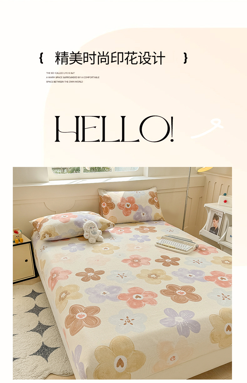 当前位置: 91家纺网 > 商品网购 > 床上用品 > 床笠 > 爱彼家纺 2026新款舒适透气老粗布凉席印花床笠单件-床笠三件套 老粗布床笠-向阳花开