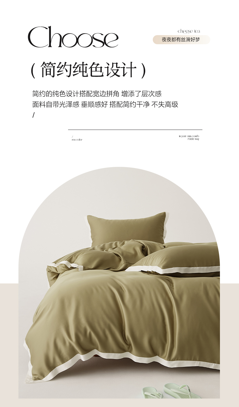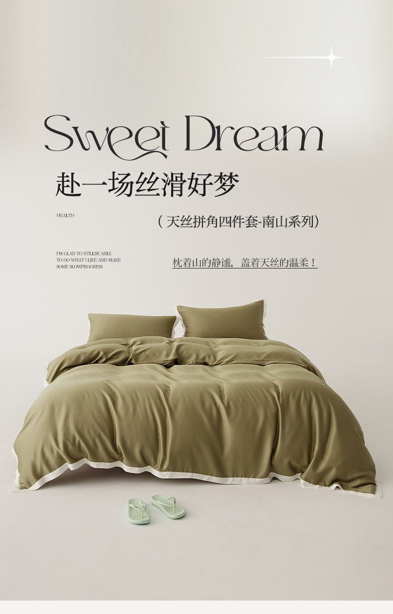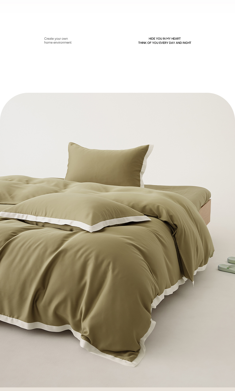 当前位置: 91家纺网 > 商品网购 > 床品套件 > 四件套 > 莱赛尔四件套 > EH家居 2026春夏新品天丝拼角四件套-南山系列 南山-橄榄绿
