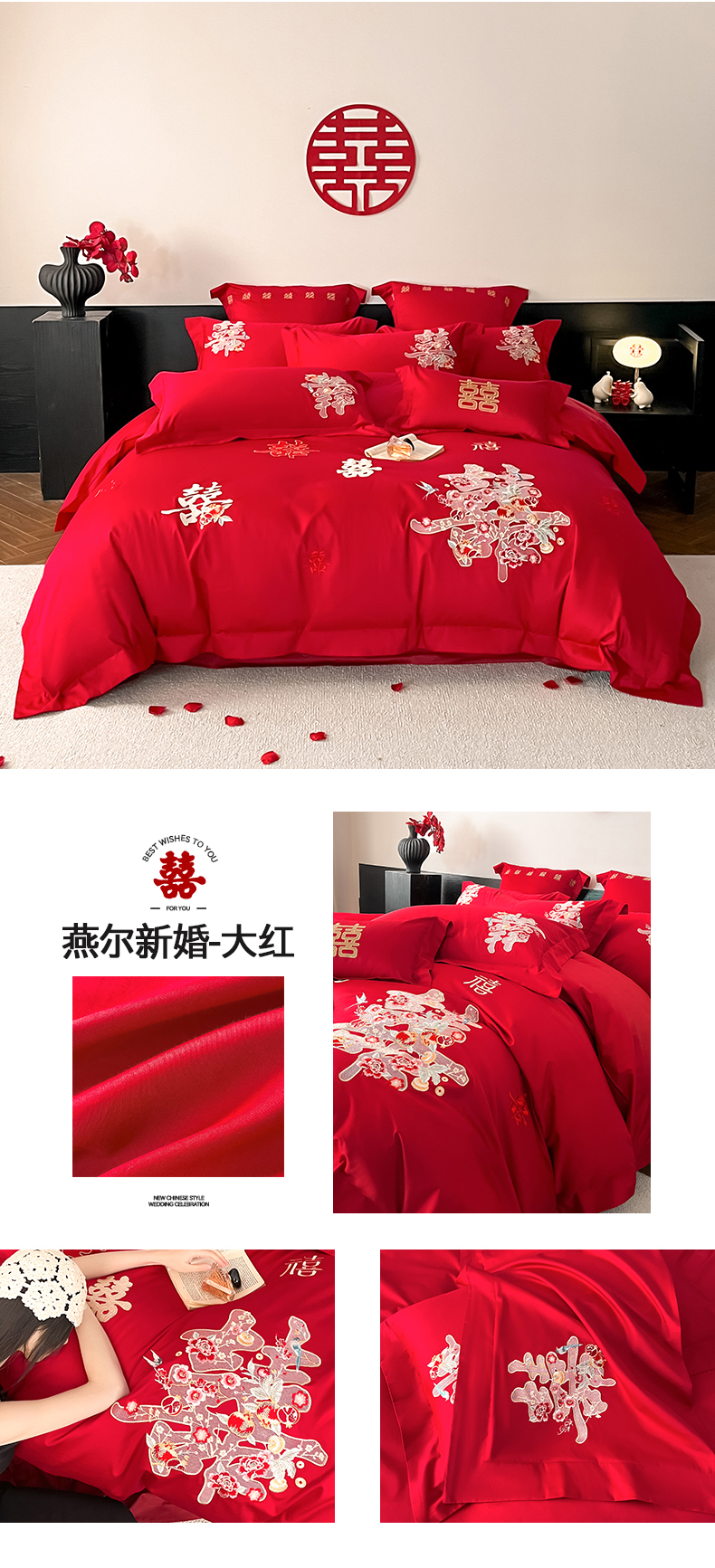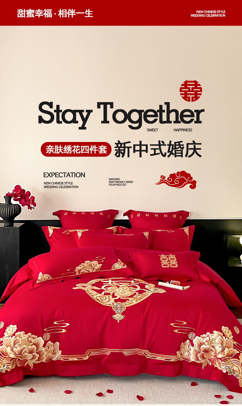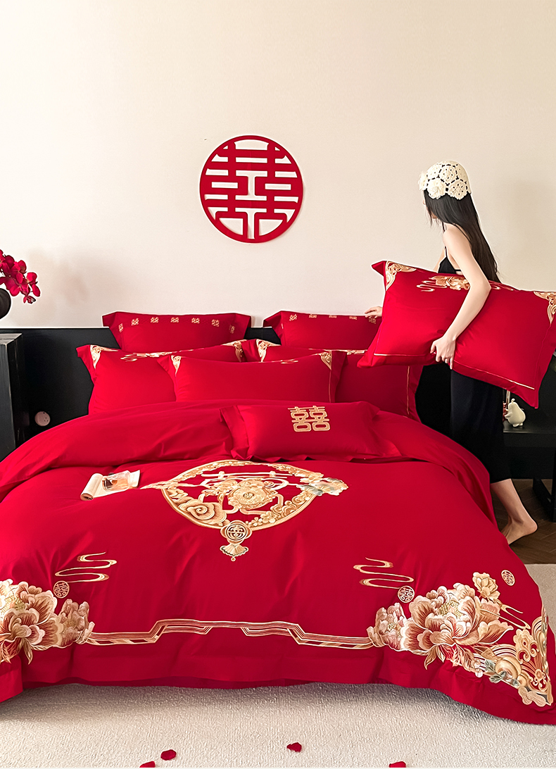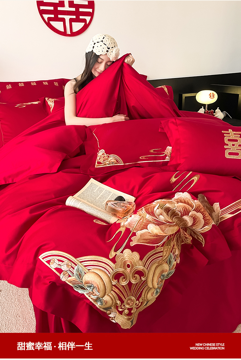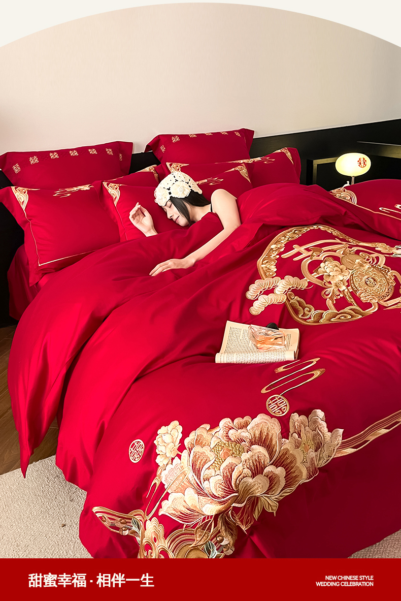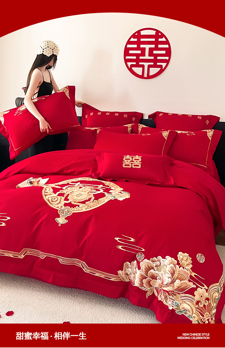 当前位置: 91家纺网 > 商品网购 > 床品套件 > 四件套 > 婚庆四件套 > 置顶家纺 2026新款新中式亲肤婚庆绣花四件套 金玉满堂-大红