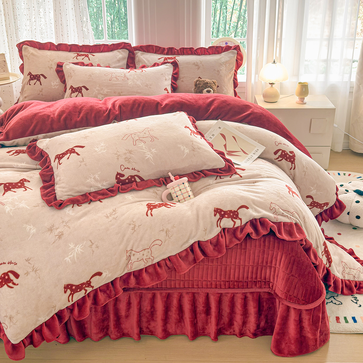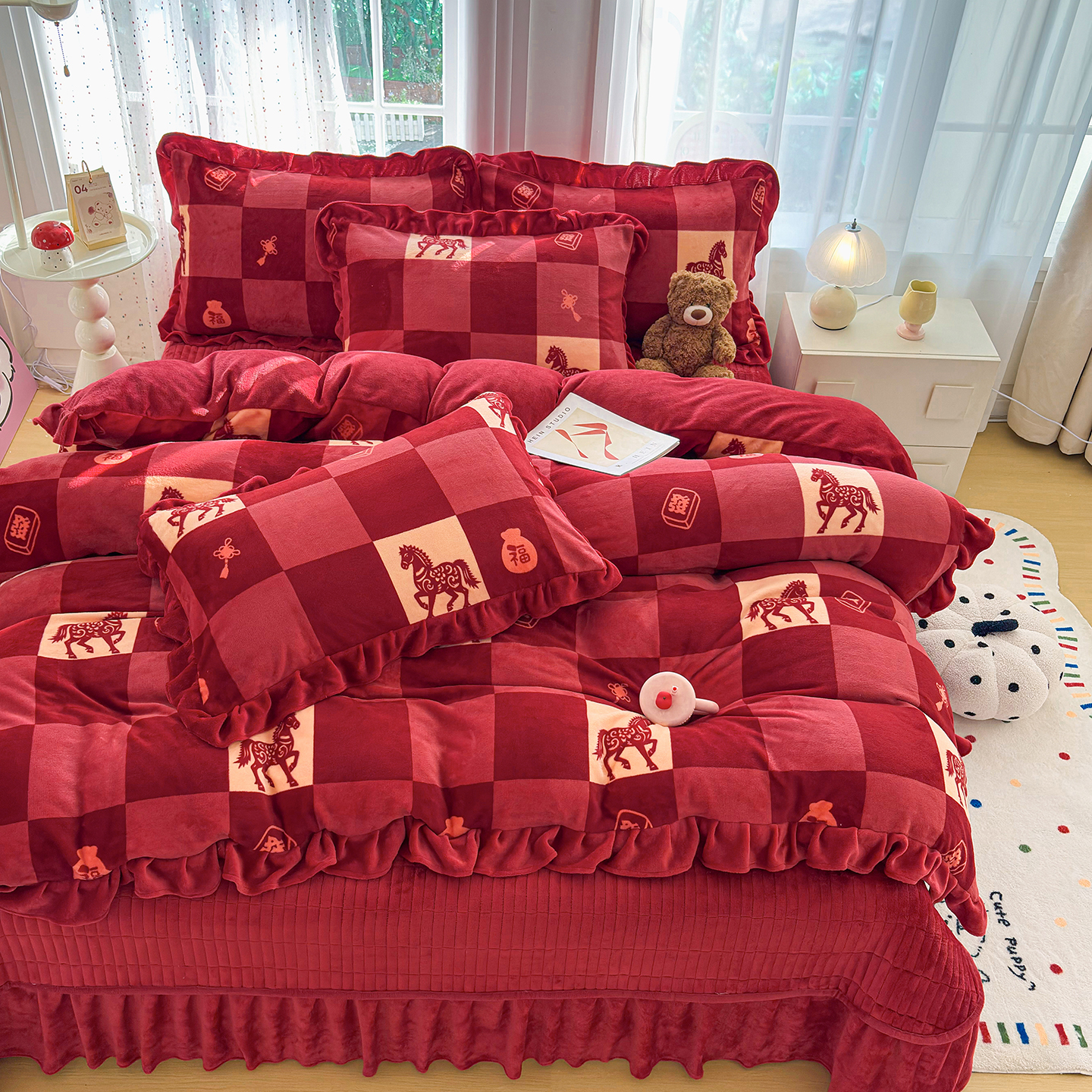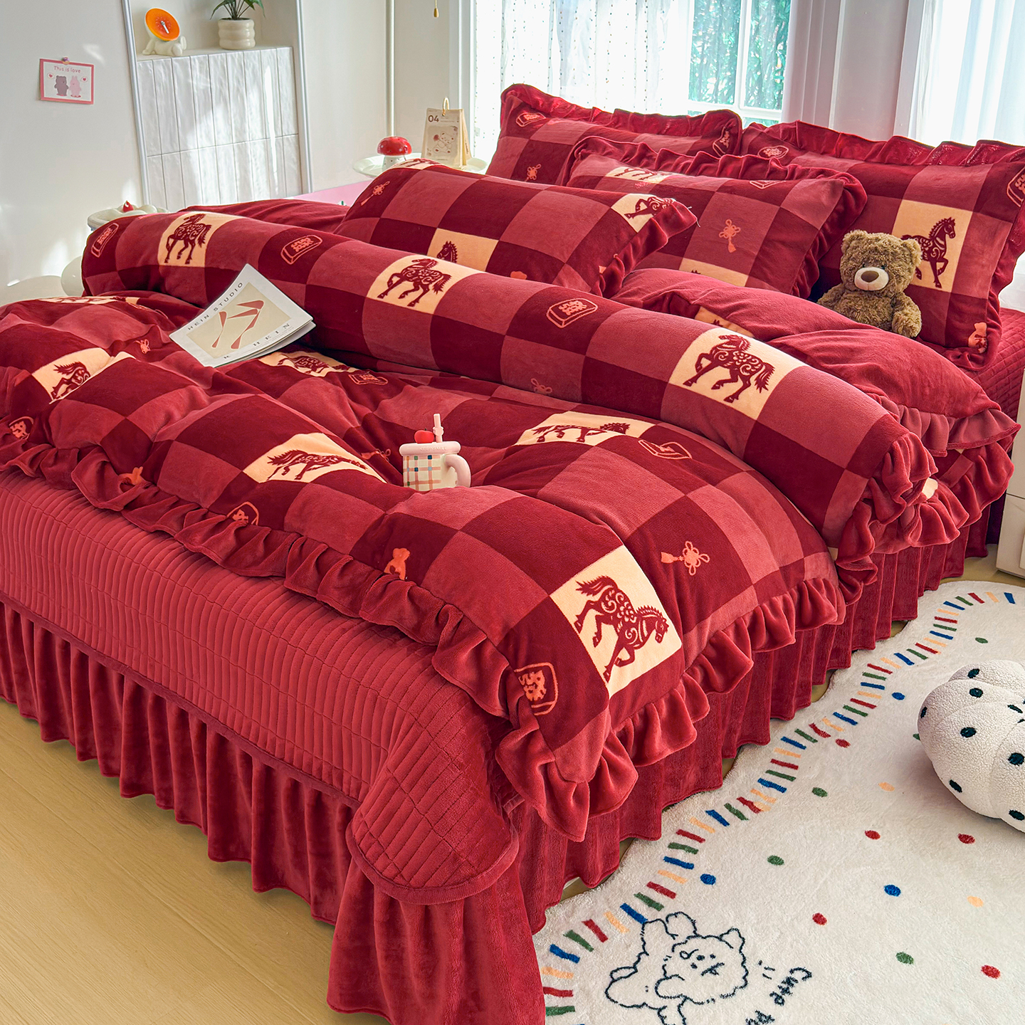 当前位置: 91家纺网 > 商品网购 > 床品套件 > 四件套 > 牛奶绒四件套 > 梵克保罗 2026新款花边款牛奶绒印花贺岁款床盖四件套床褥炕垫四件套 花边款-经典小马