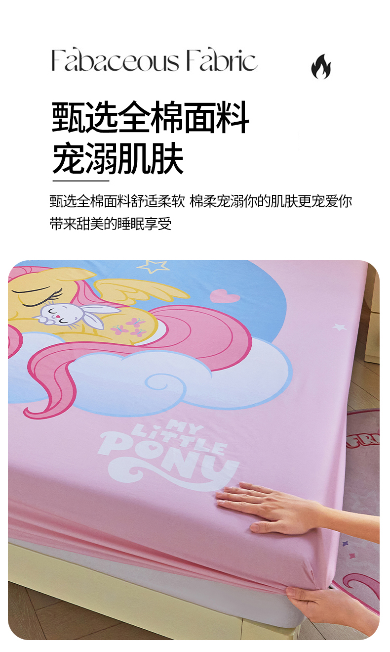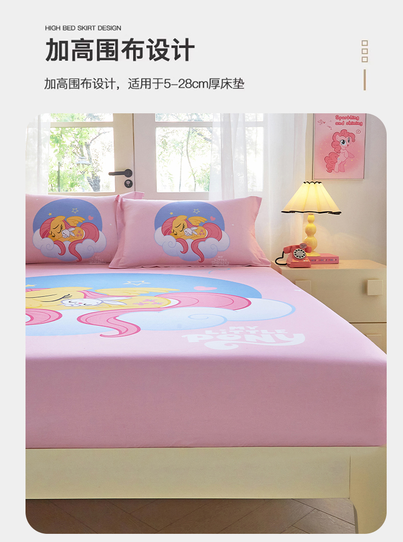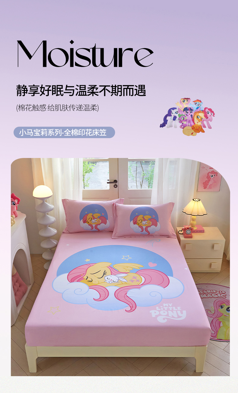 • 91家纺网 家纺一手货源 找家纺 蘭菲家纺 2026新款全棉纯棉大版卡通单床笠床笠单件-小马宝莉 晚安.宝莉