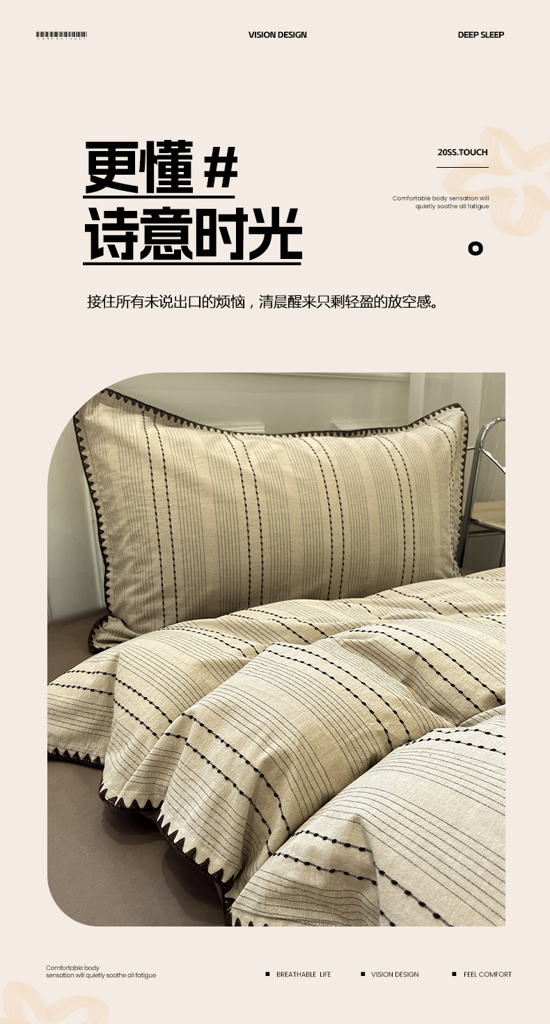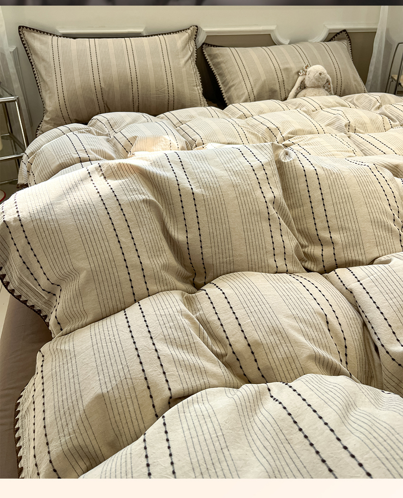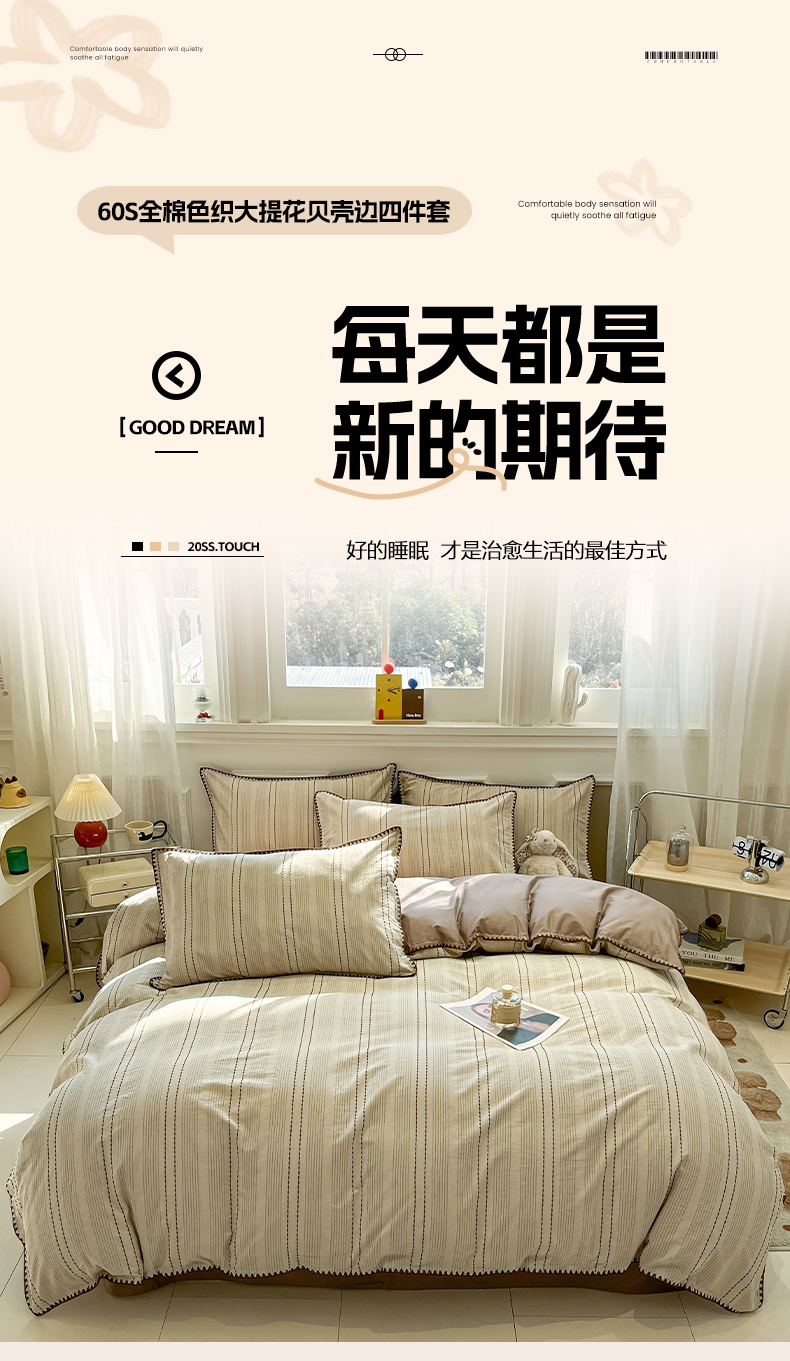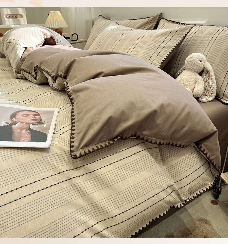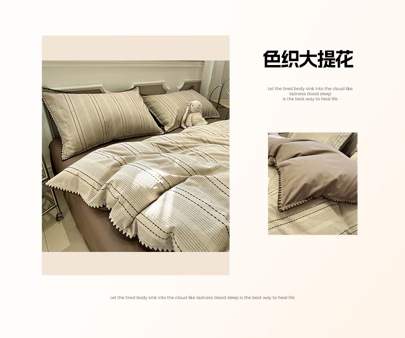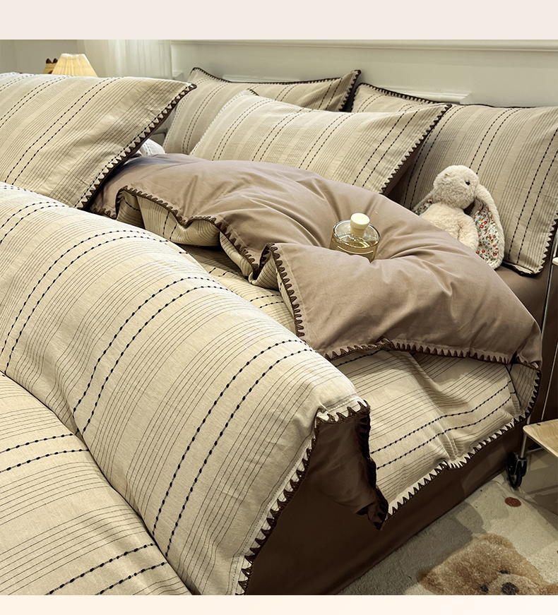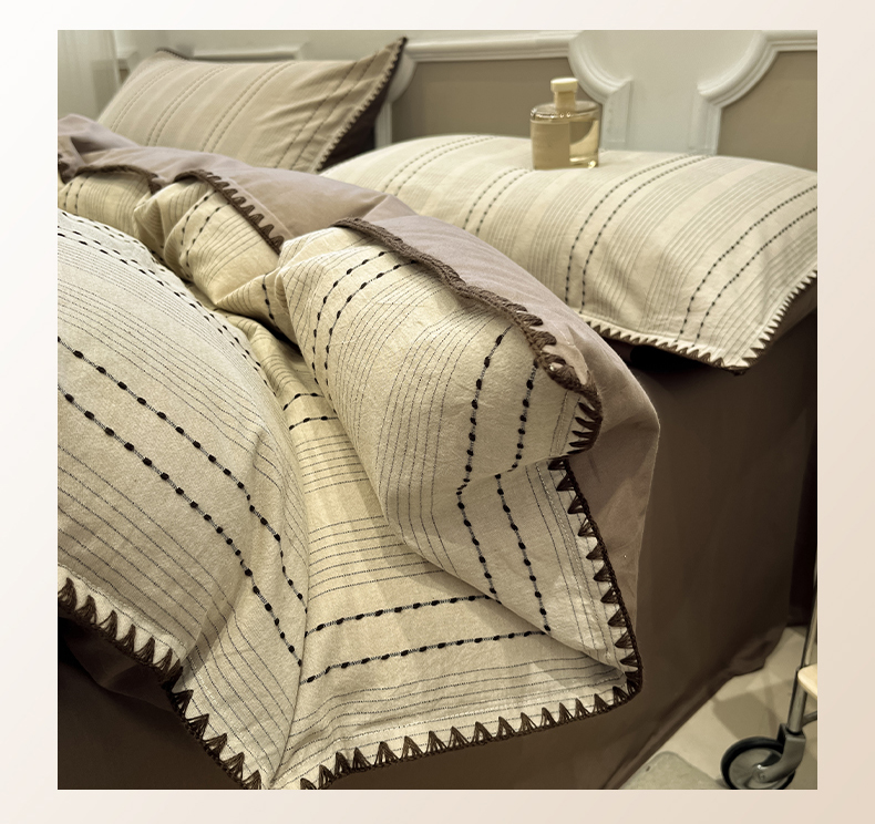 当前位置: 91家纺网 > 商品网购 > 床品套件 > 四件套 > 全棉普通四件套 > 莱茵家居 2026新款A类全棉纯棉色织大提花贝壳边四件套-序语松间系列 序语-咖