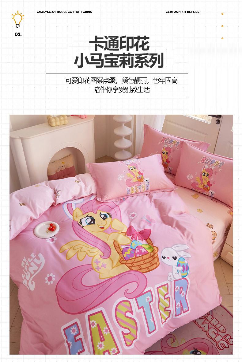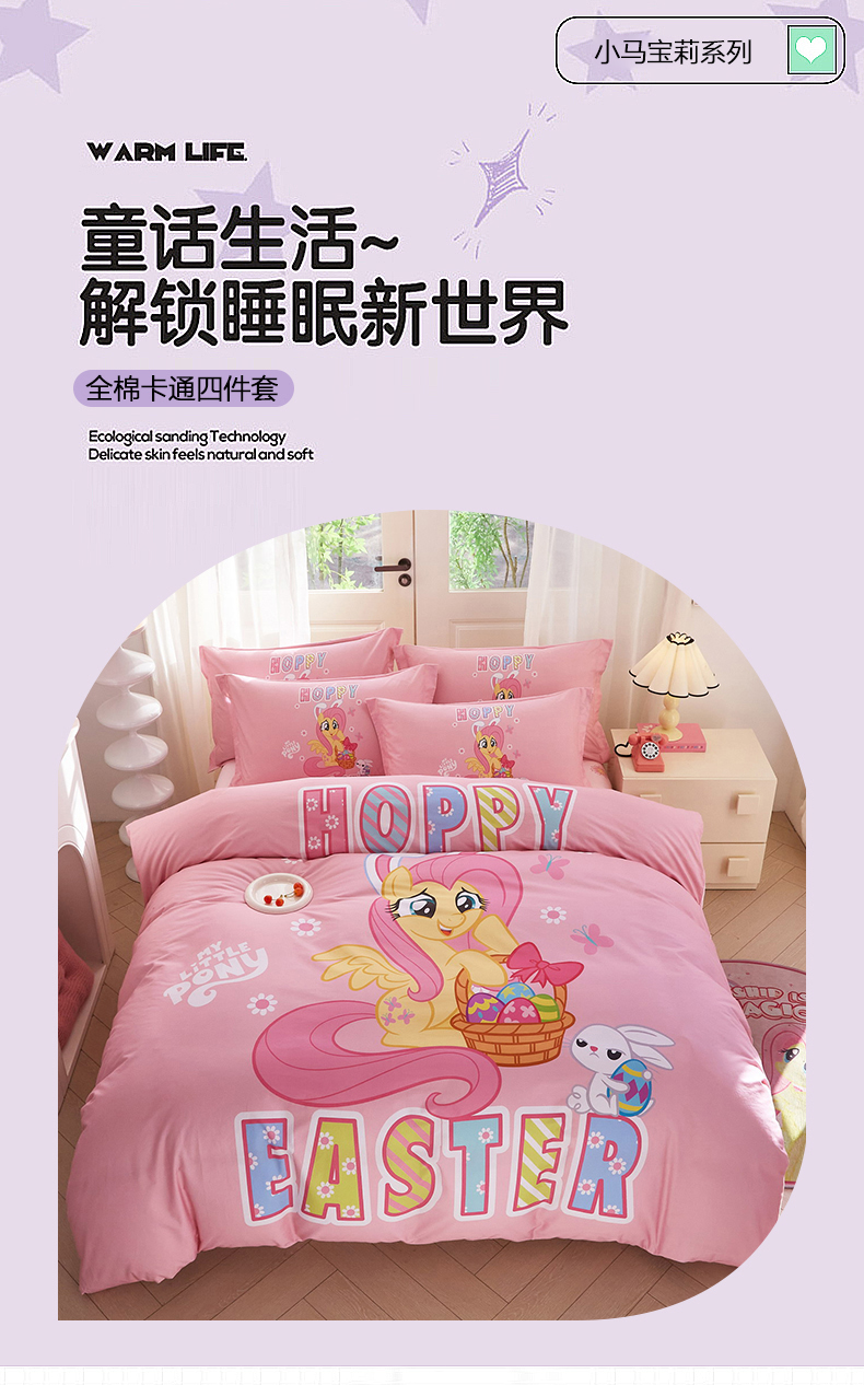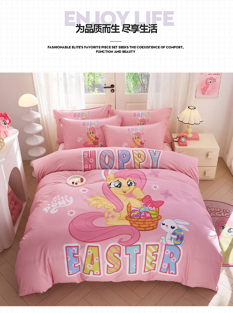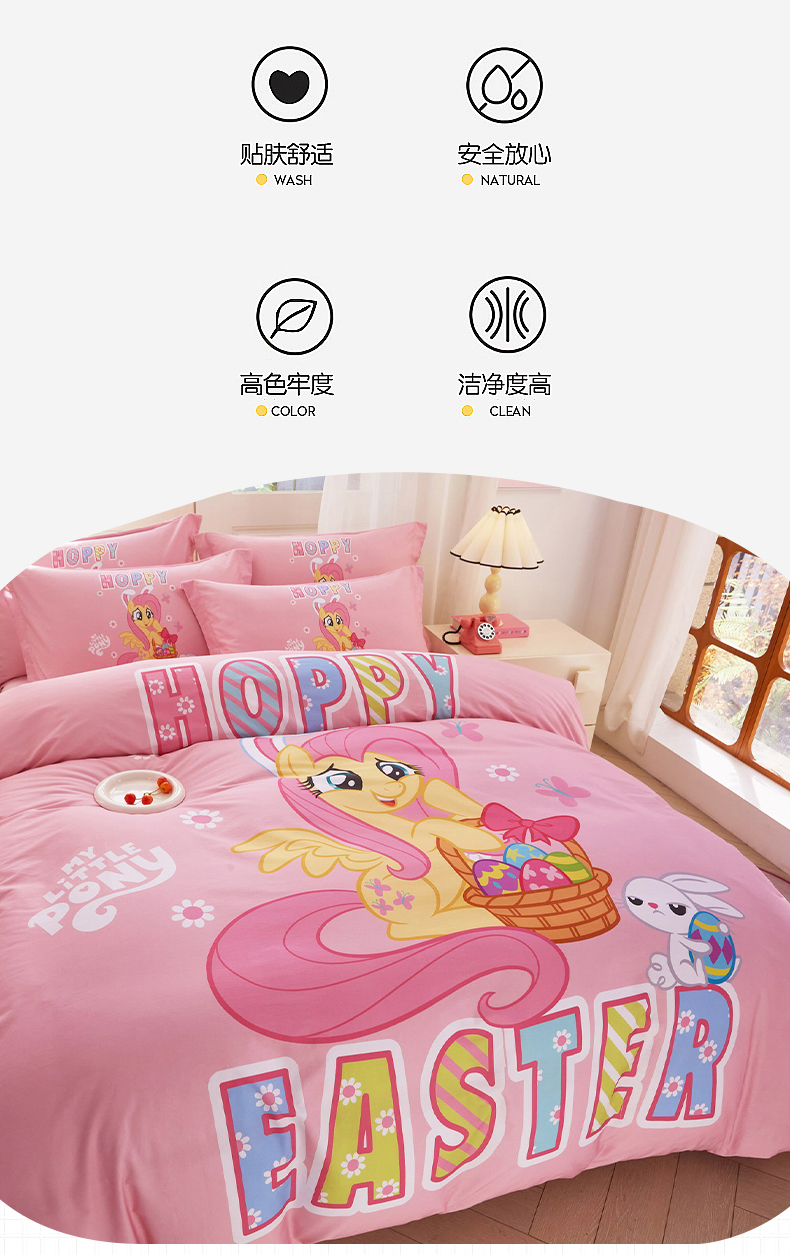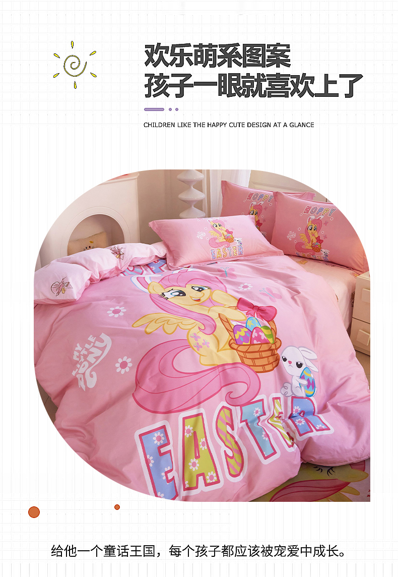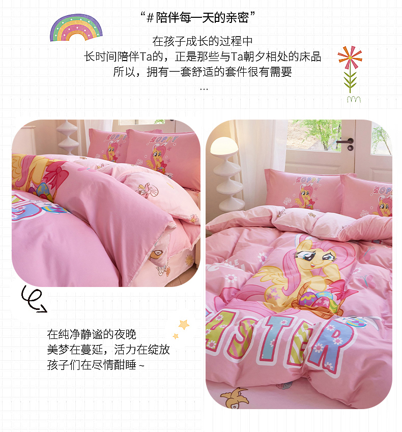 当前位置: 91家纺网 > 商品网购 > 床品套件 > 四件套 > 全棉普通四件套 > 蘭菲家纺 2026新款全棉纯棉大版卡通四件套-小马宝莉 粉色.宝莉
