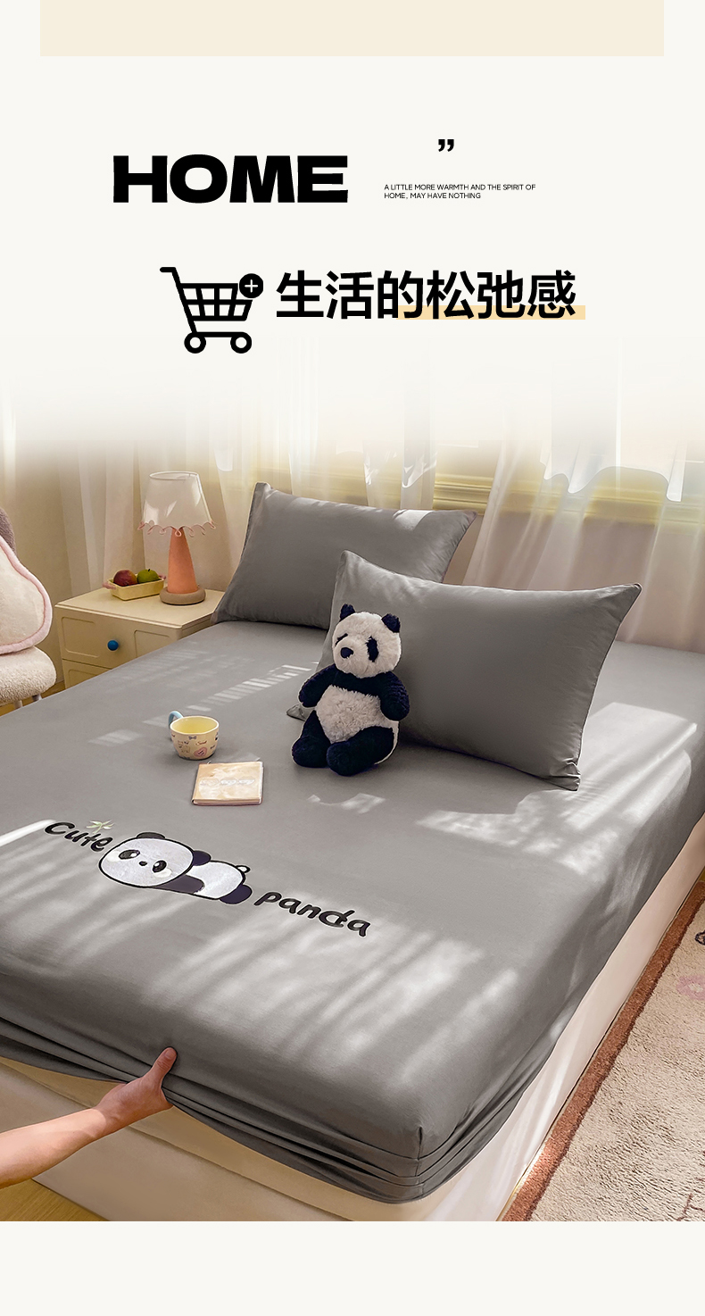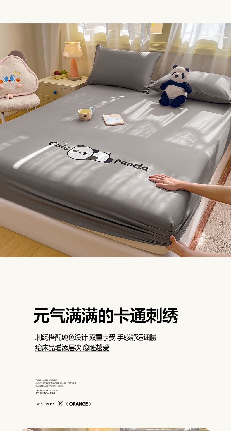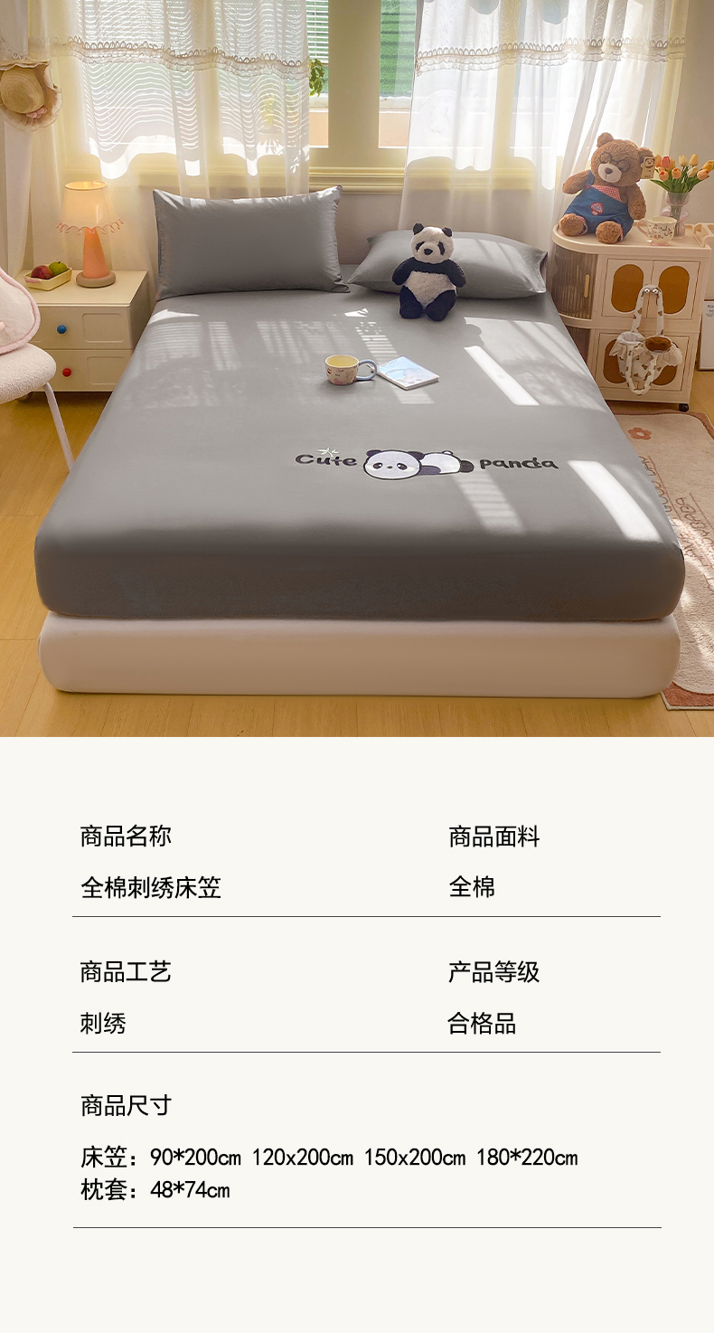 恋人优选 2026新款爬爬熊刺绣全棉纯棉单床笠床笠单件(专版花型 盗版必究) 爬爬熊刺绣浅灰