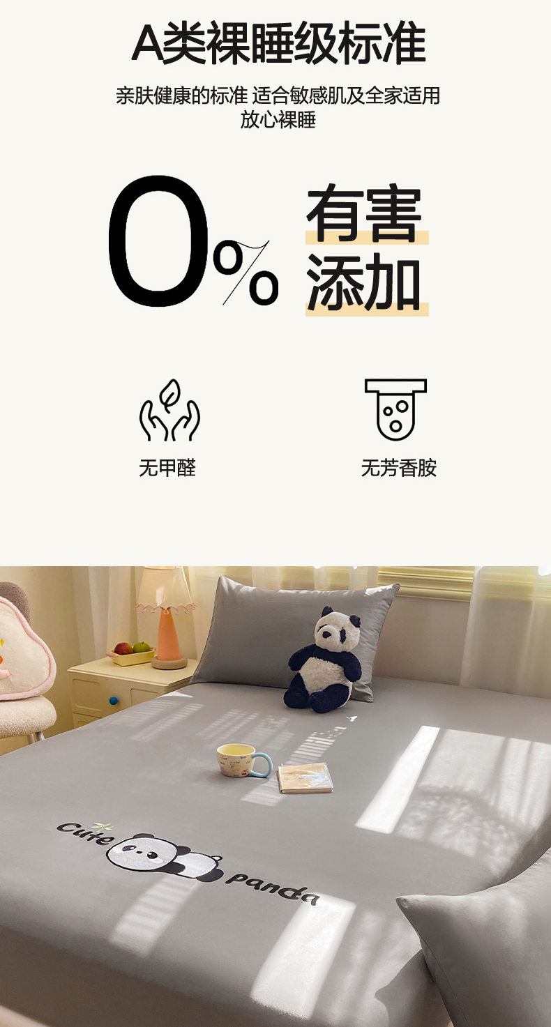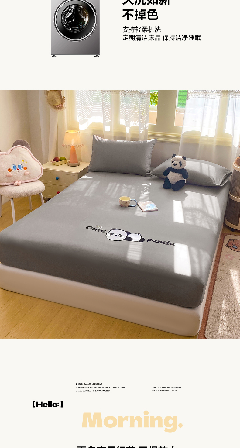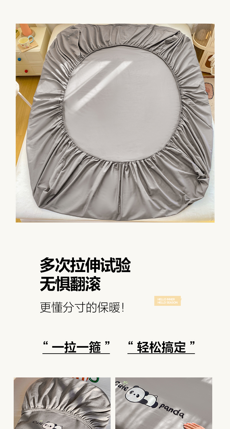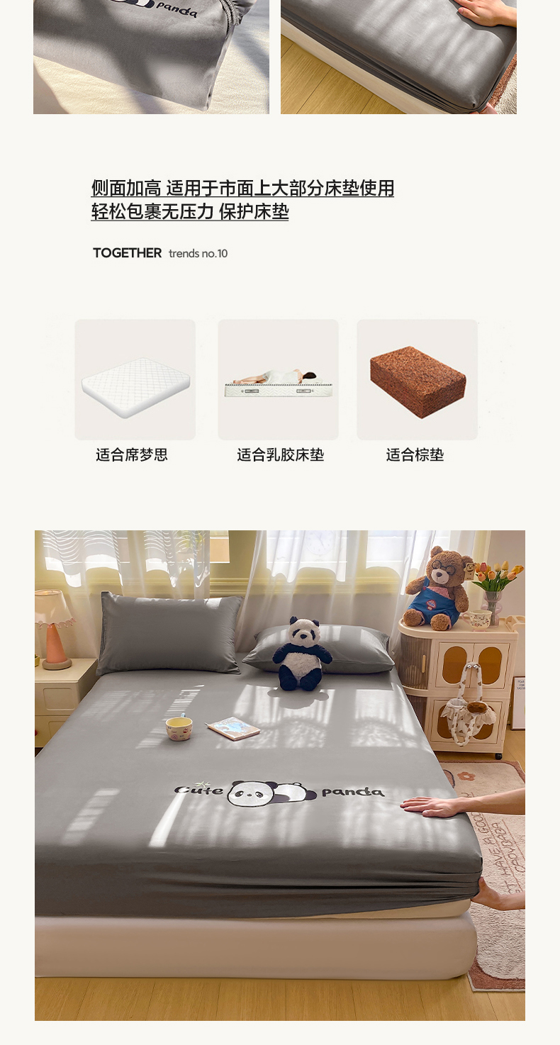恋人优选 2026新款爬爬熊刺绣全棉纯棉单床笠床笠单件(专版花型 盗版必究) 爬爬熊刺绣浅灰
