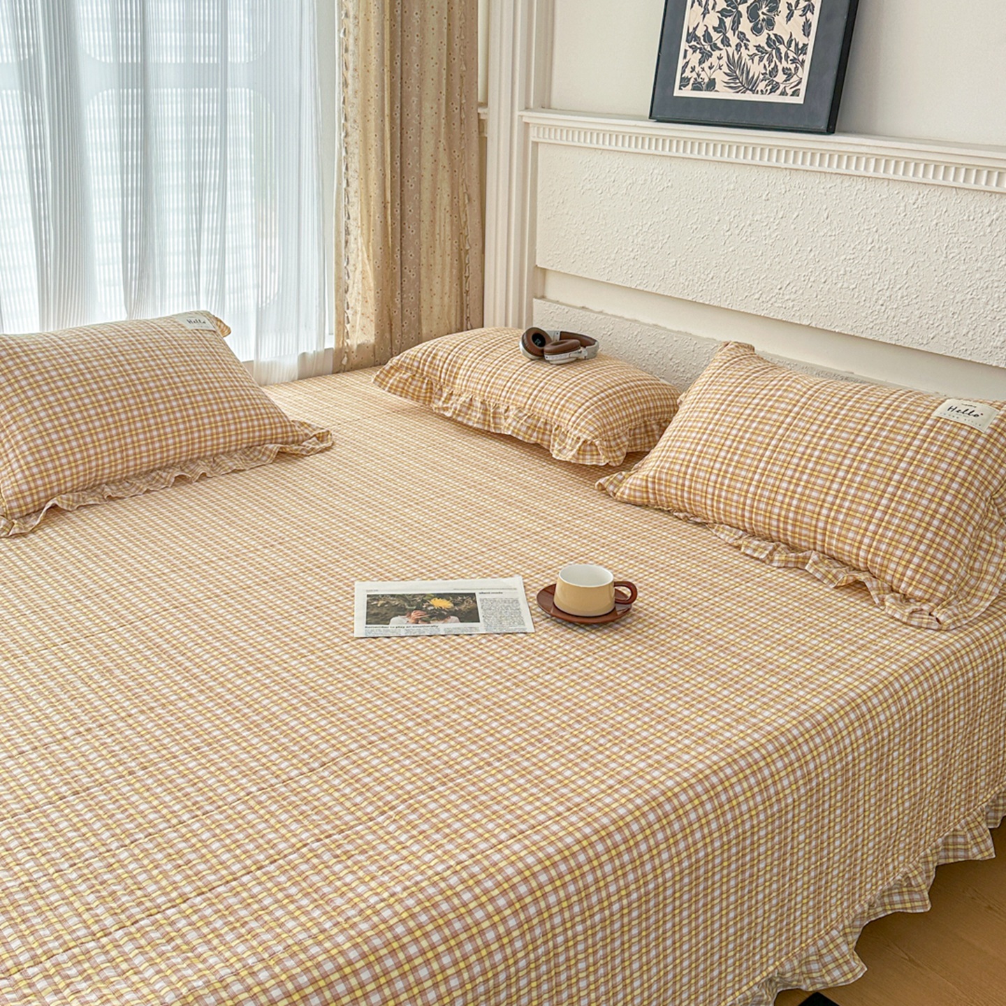 (总)暖居 2026新款支持定制法式花边纯棉榻榻米四件套全棉大炕盖三件套四季通用,白山茶,海盐兔,赫本白,晨暮间,灰格蝴蝶结,奶油点点,波点紫,豹纹KT,南法假日,浅咖,时尚小香,碎花兔蓝,旺仔紫色,小美好,小甜橘,小香格子,雅格,中国美