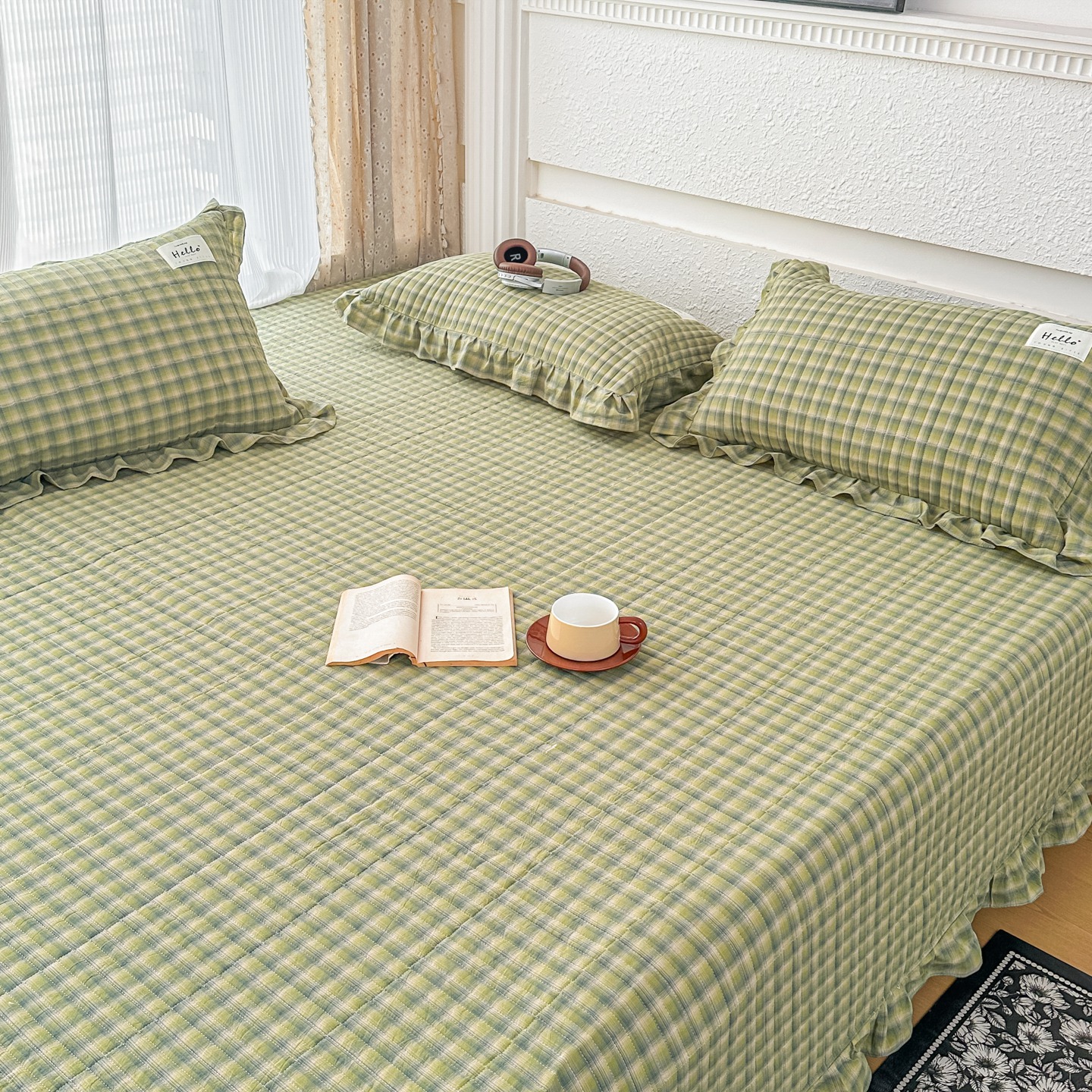(总)暖居 2026新款大尺寸全棉色织花边款榻榻米农村大炕盖,圣诞格,格语绿,简溪,松野,英式格纹,云曲