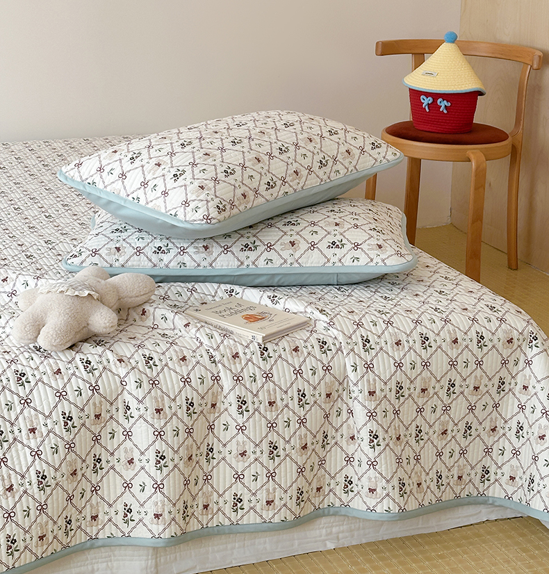 (总)漫时光 2025新款正面纯棉反面宝宝绒印花夹棉砂洗床盖三件套,班尼熊,风铃小兔,花间小兔,花园兔,开心屋,蕾丝小狗,猫咪派对,曲奇小狗,条纹熊,汪汪曲,小狗日记,小伙伴,小熊猫