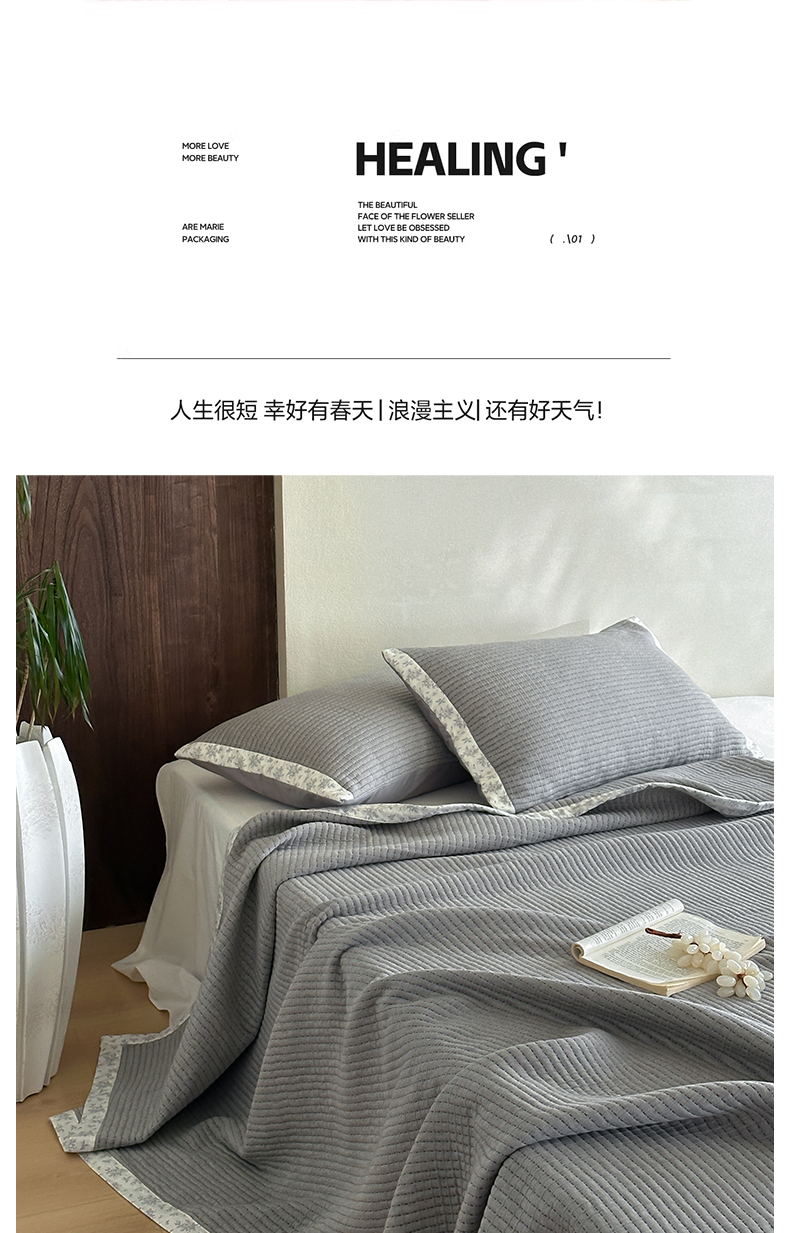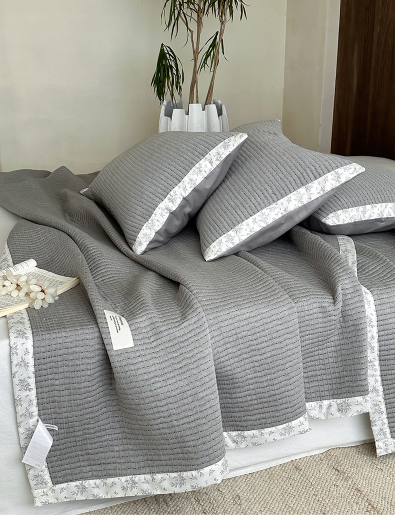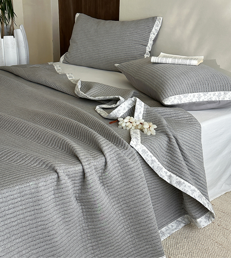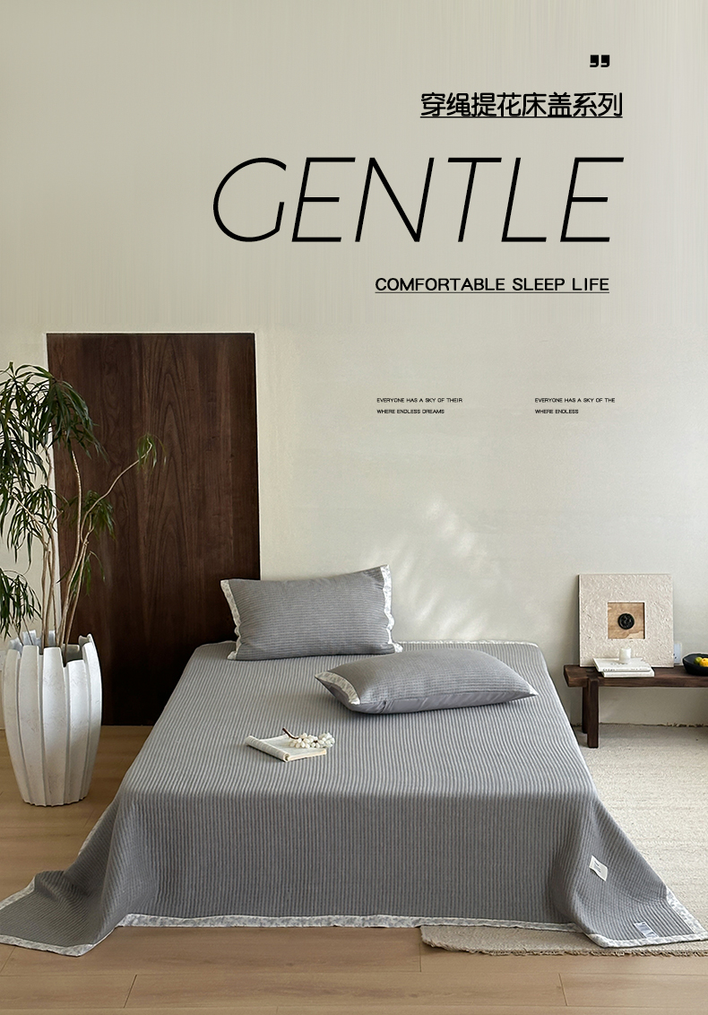 商品名称:漫时光 2026新款全棉穿绳提花床盖-慢织 慢织-灰谧