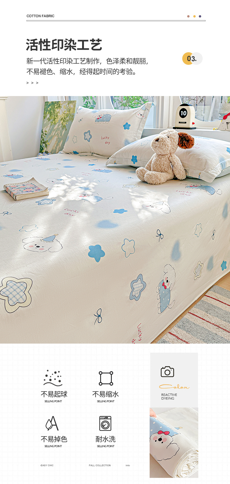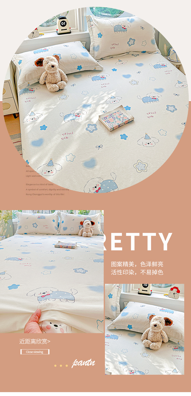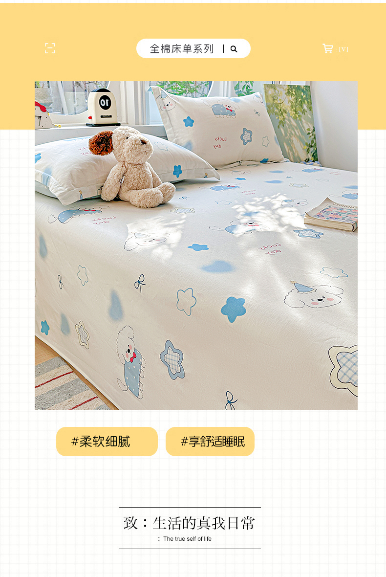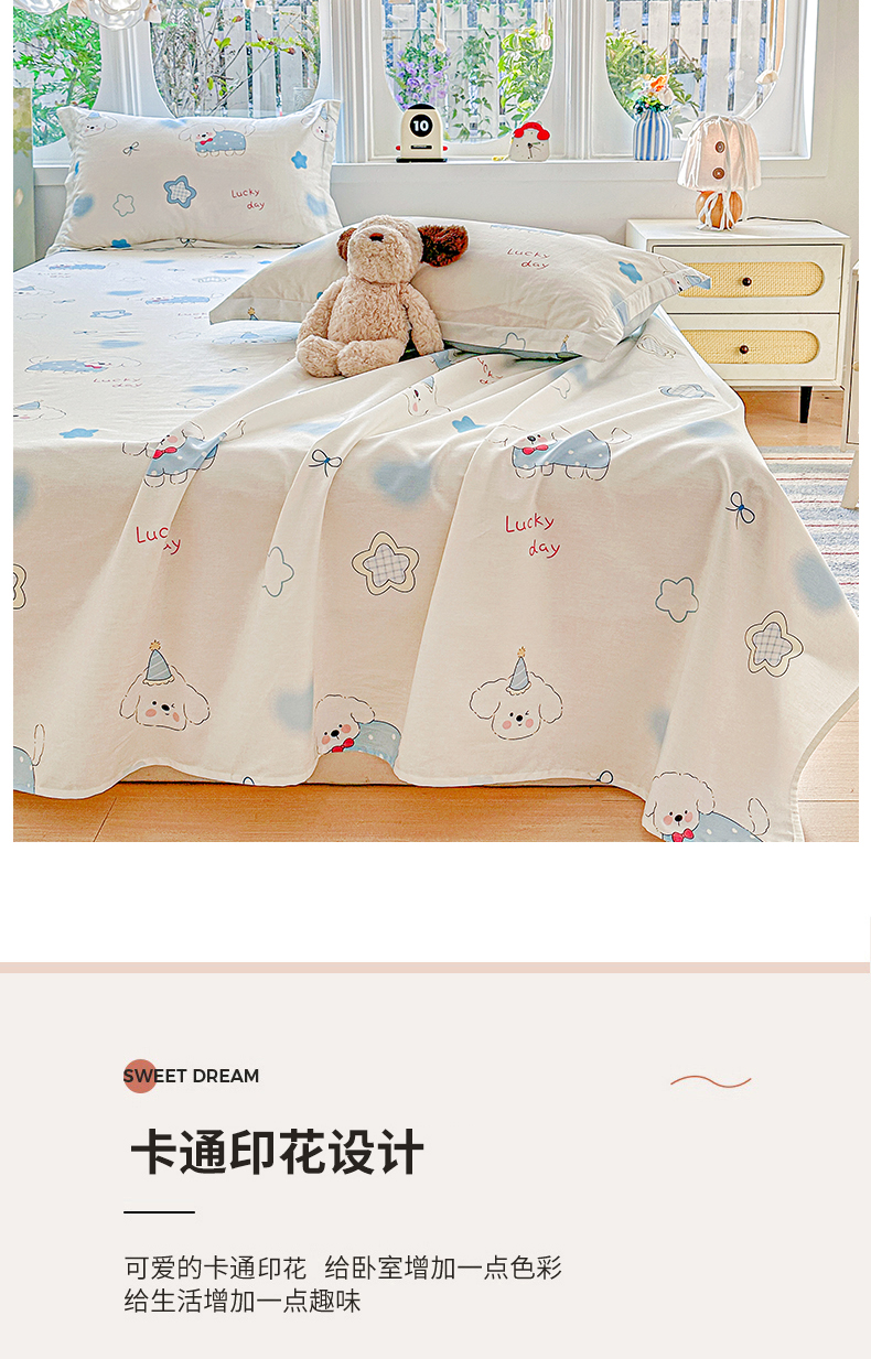 • 91家纺网 家纺一手货源 找家纺 恩泽家纺 2026春夏新款全棉纯棉12868印花四件套及单品系列-单床单床单单件 星愿萌犬