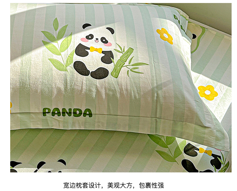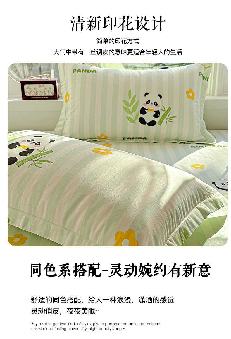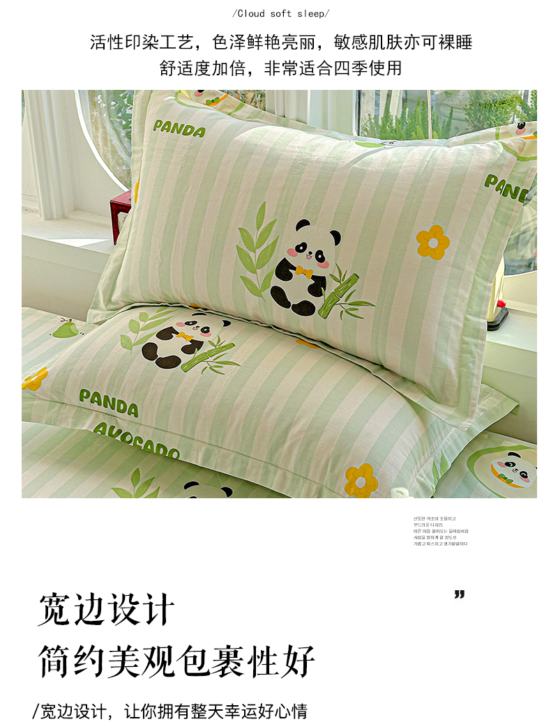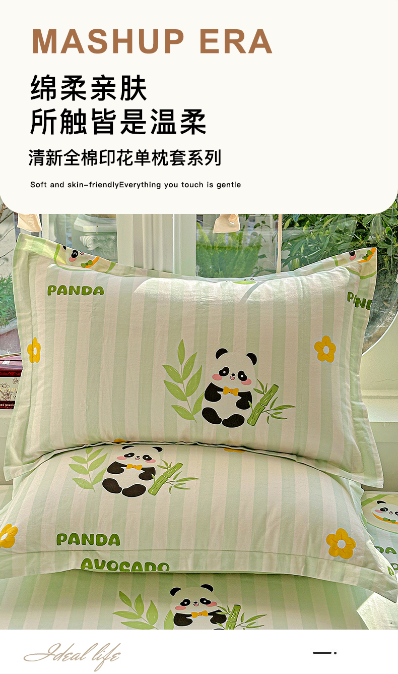 恩泽家纺 2026春夏新款全棉纯棉12868印花四件套及单品系列-单枕套枕套单件 熊猫与牛油果