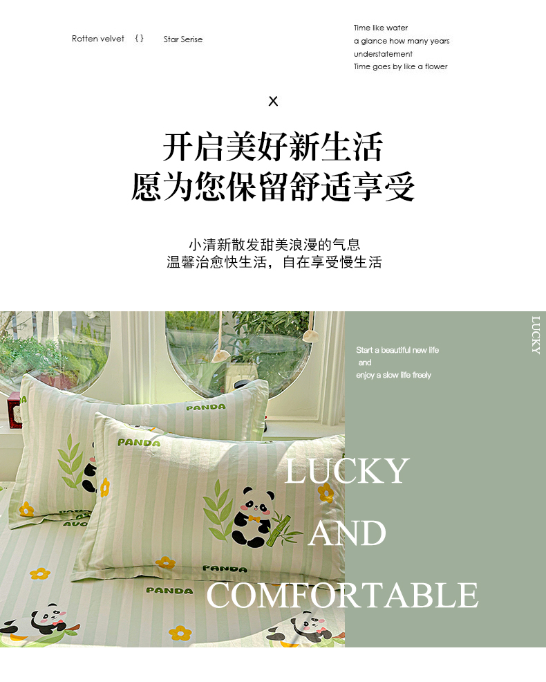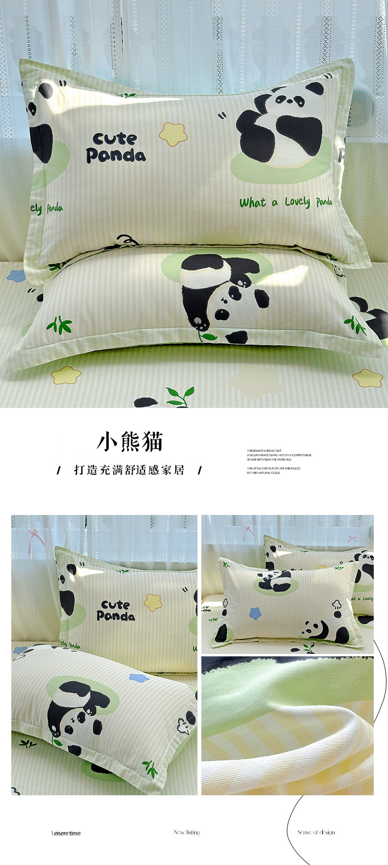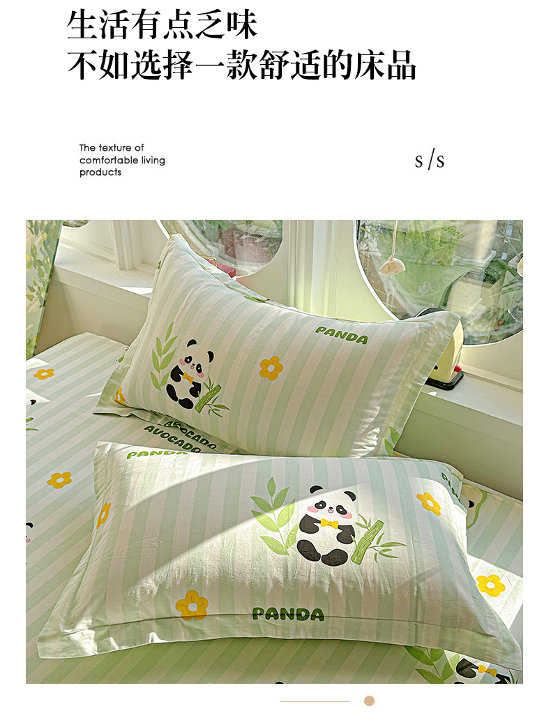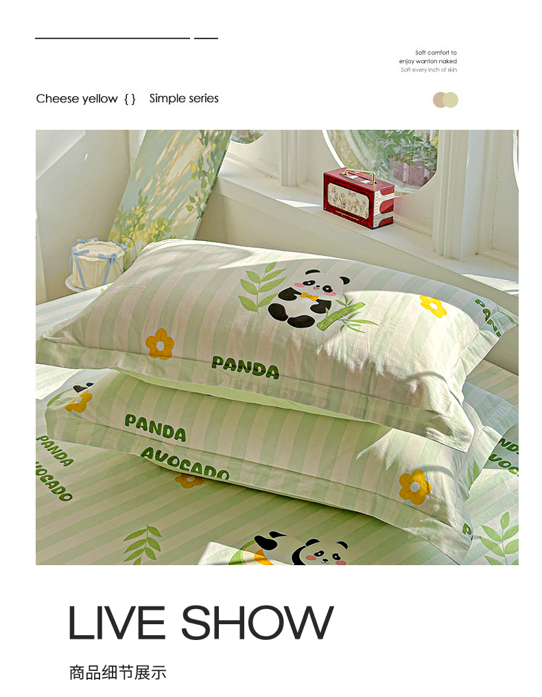 恩泽家纺 2026春夏新款全棉纯棉12868印花四件套及单品系列-单枕套枕套单件 熊猫与牛油果