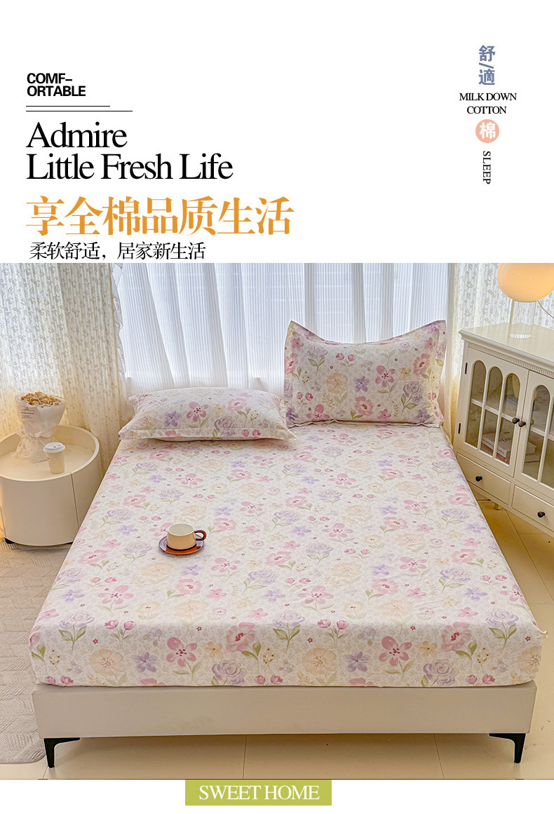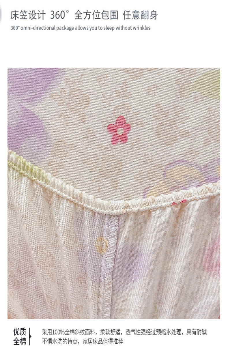 安逸家纺 2026新款全棉纯棉印花12868系列-床笠单件单床笠 甜心花朵