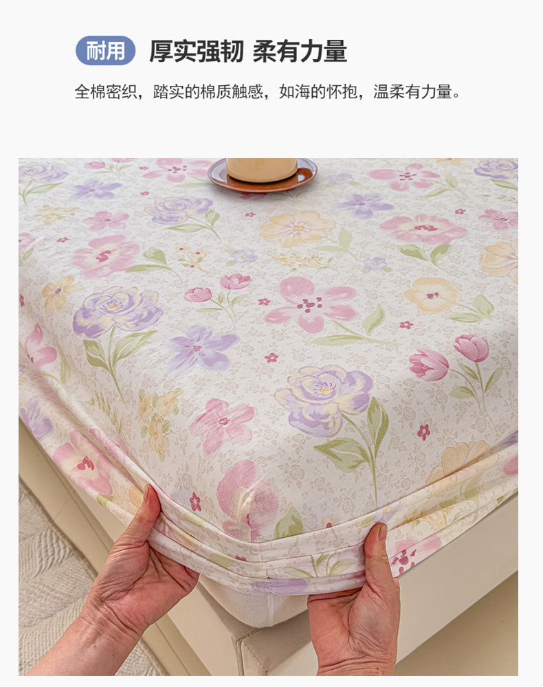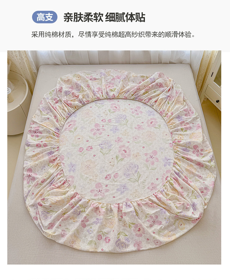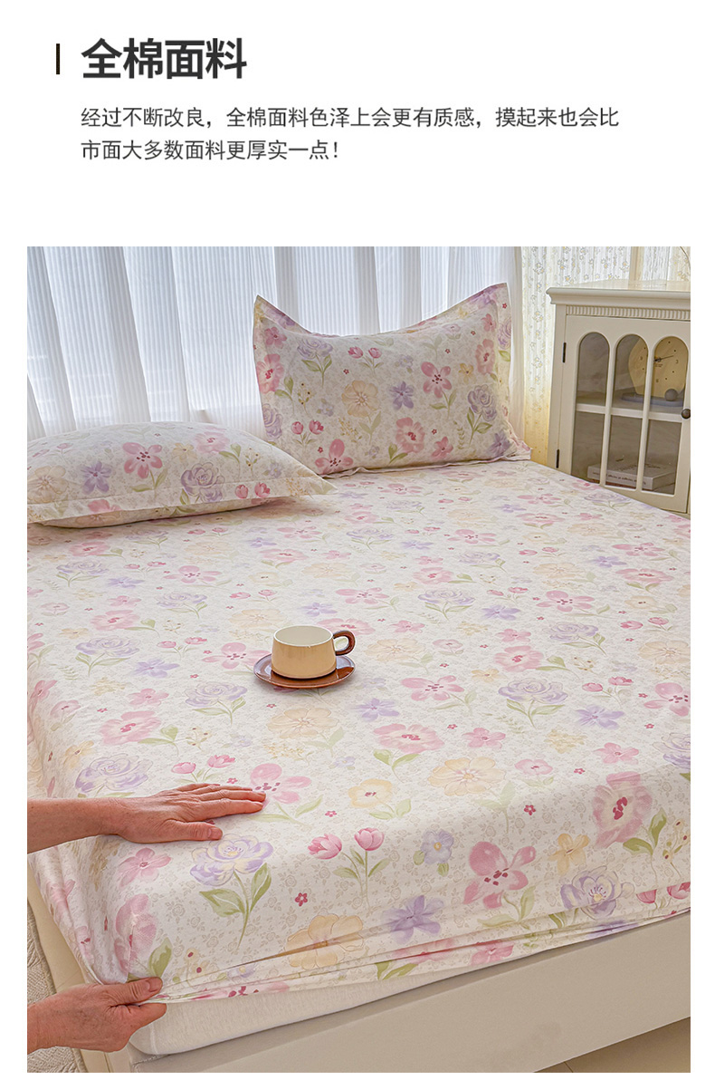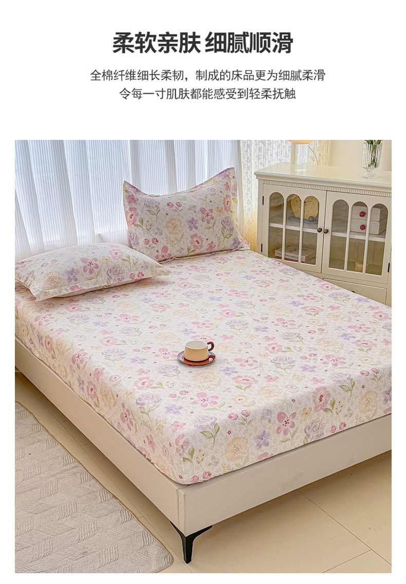 • 91家纺网 家纺一手货源 找家纺 安逸家纺 2026新款全棉纯棉印花12868系列-床笠单件单床笠 甜心花朵