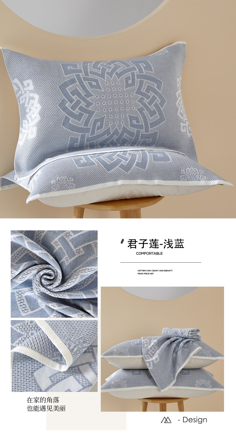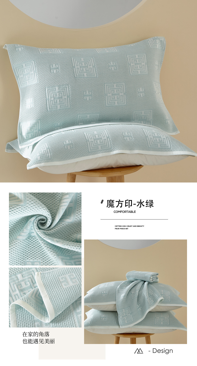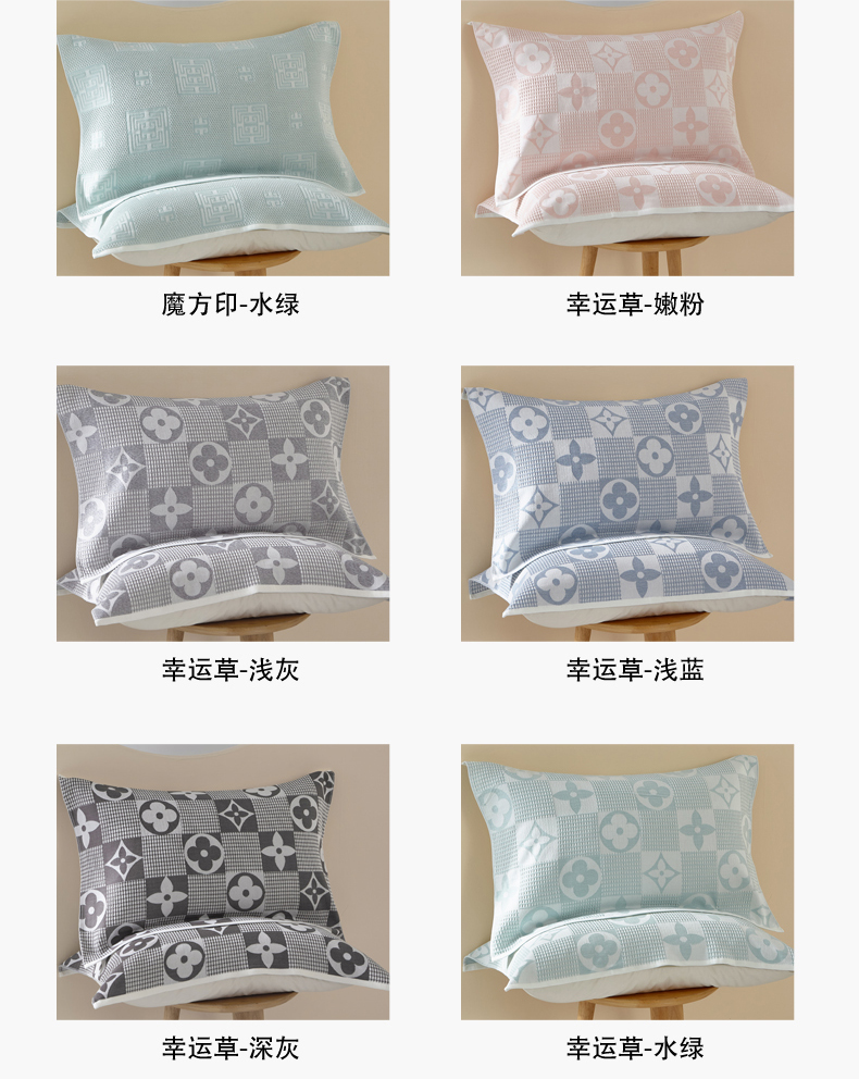 商品名称:朴尔家纺-毛巾被 2026新款全棉纱布蜂窝结构系列枕巾系列 幸运草-浅蓝