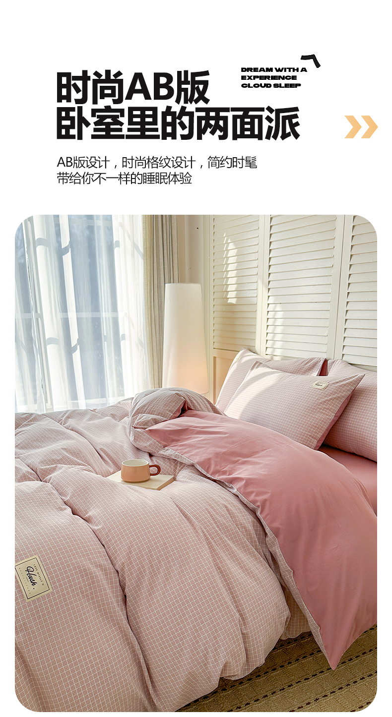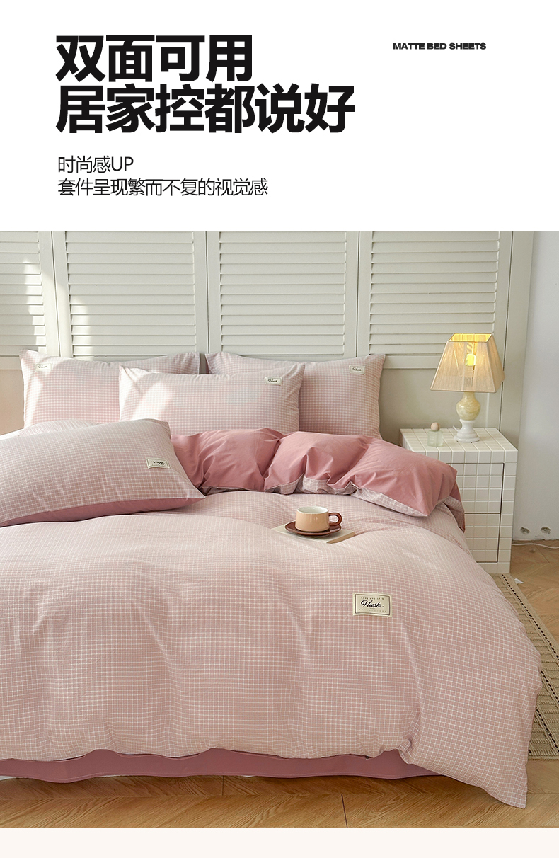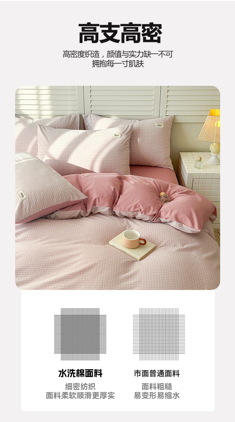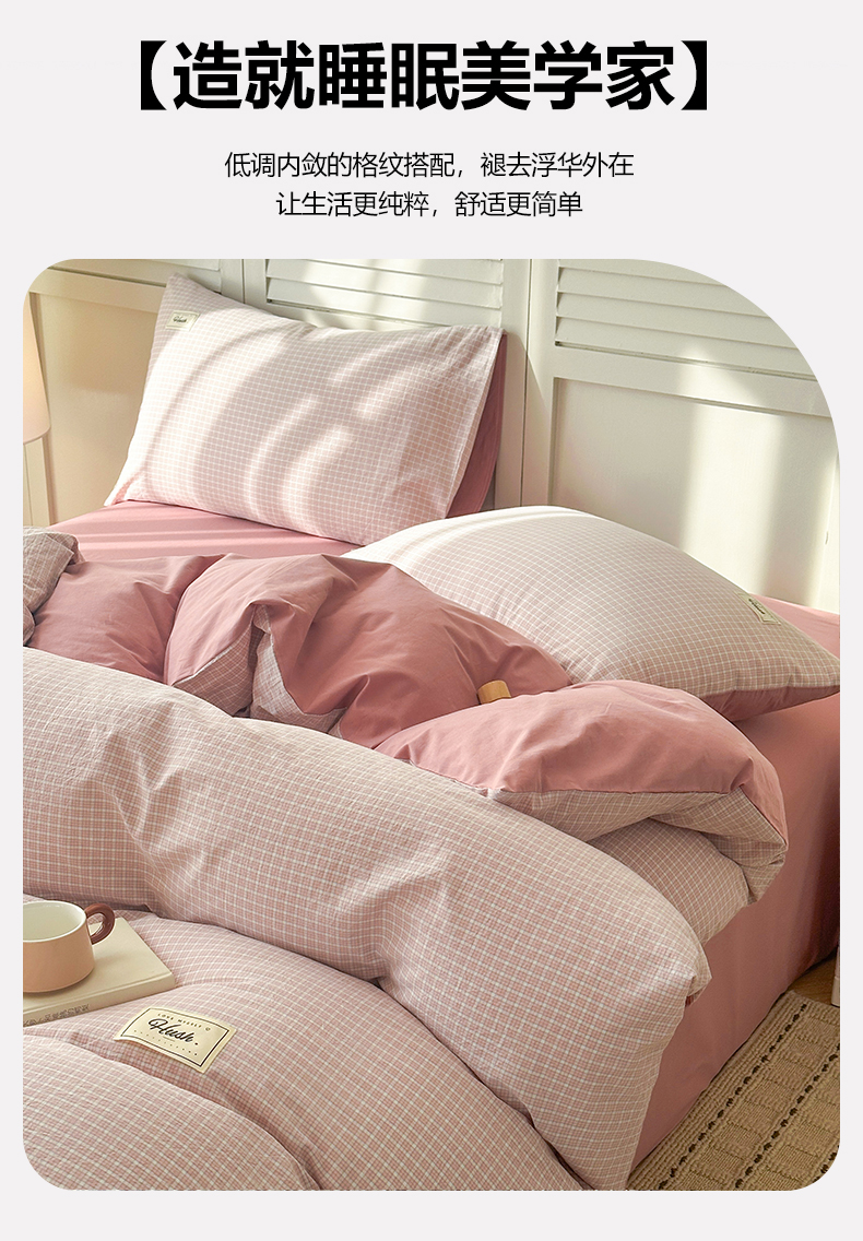 当前位置: 91家纺网 > 商品网购 > 床品套件 > 四件套 > 全棉普通四件套 > 木子家纺 2026春夏新款色织全棉纯棉四件套 森浅-粉