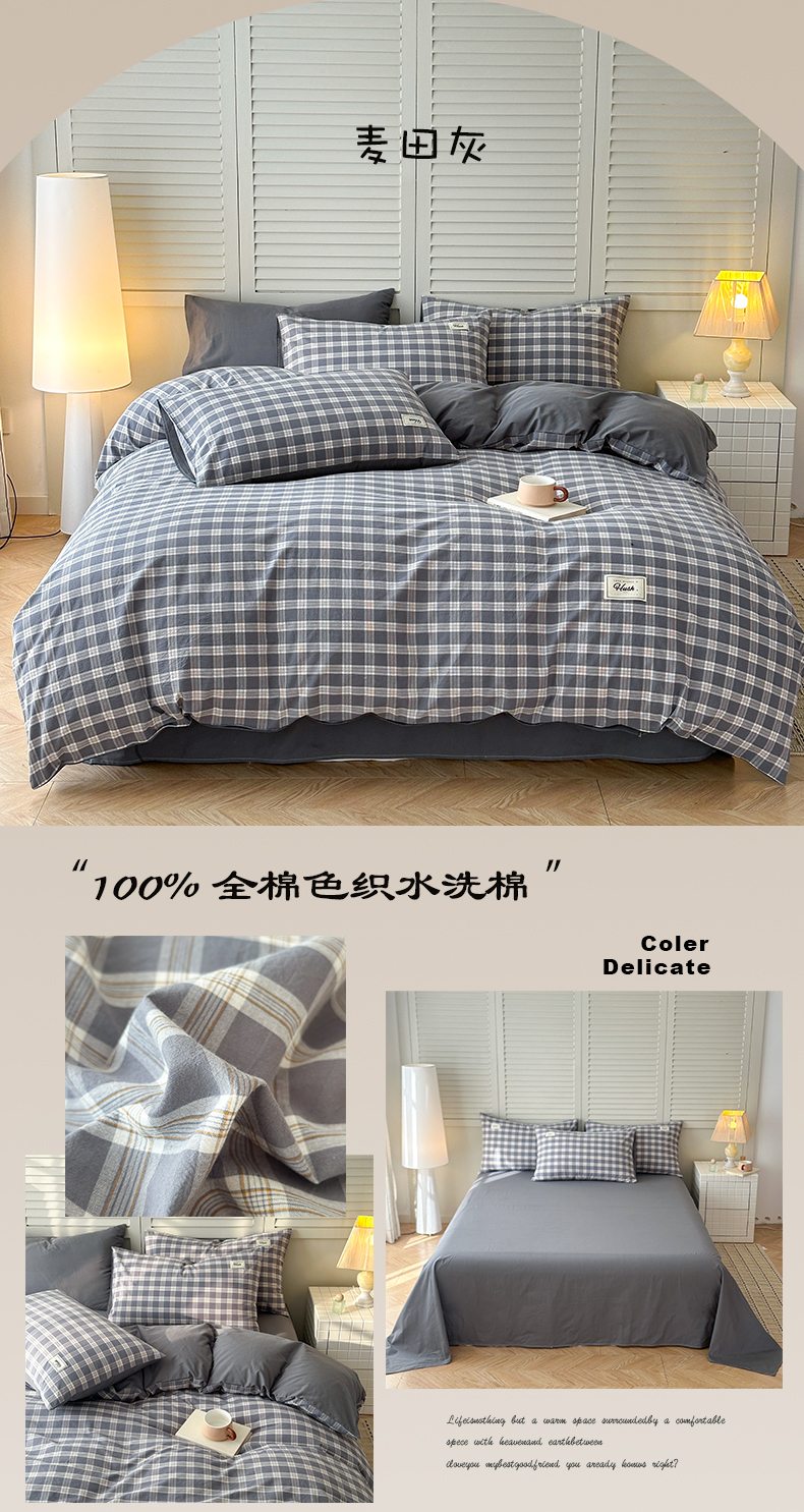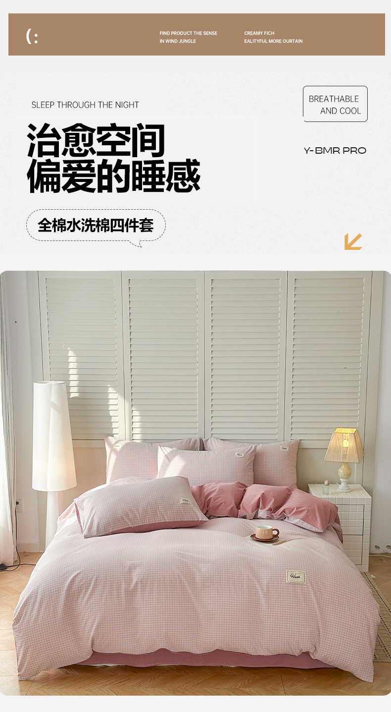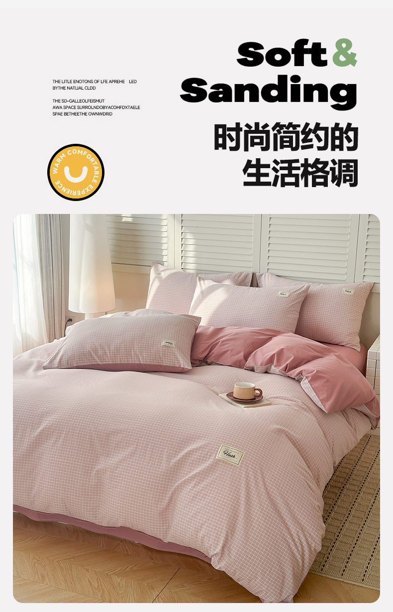 当前位置: 91家纺网 > 商品网购 > 床品套件 > 四件套 > 全棉普通四件套 > 木子家纺 2026春夏新款色织全棉纯棉四件套 森浅-粉