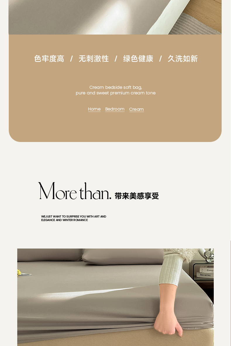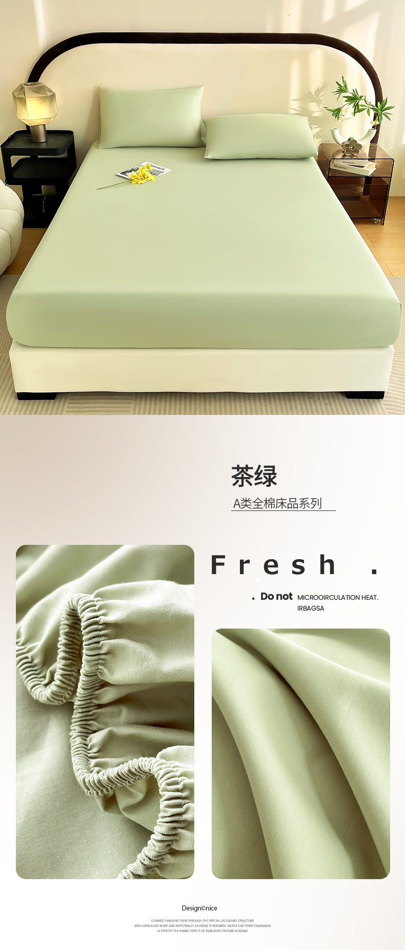 • 91家纺网 家纺一手货源 找家纺 (总)润肤居 2026新款A类全棉13372单床笠,茶绿,粉白,粉瓷,摩卡,晴蓝,杏仁