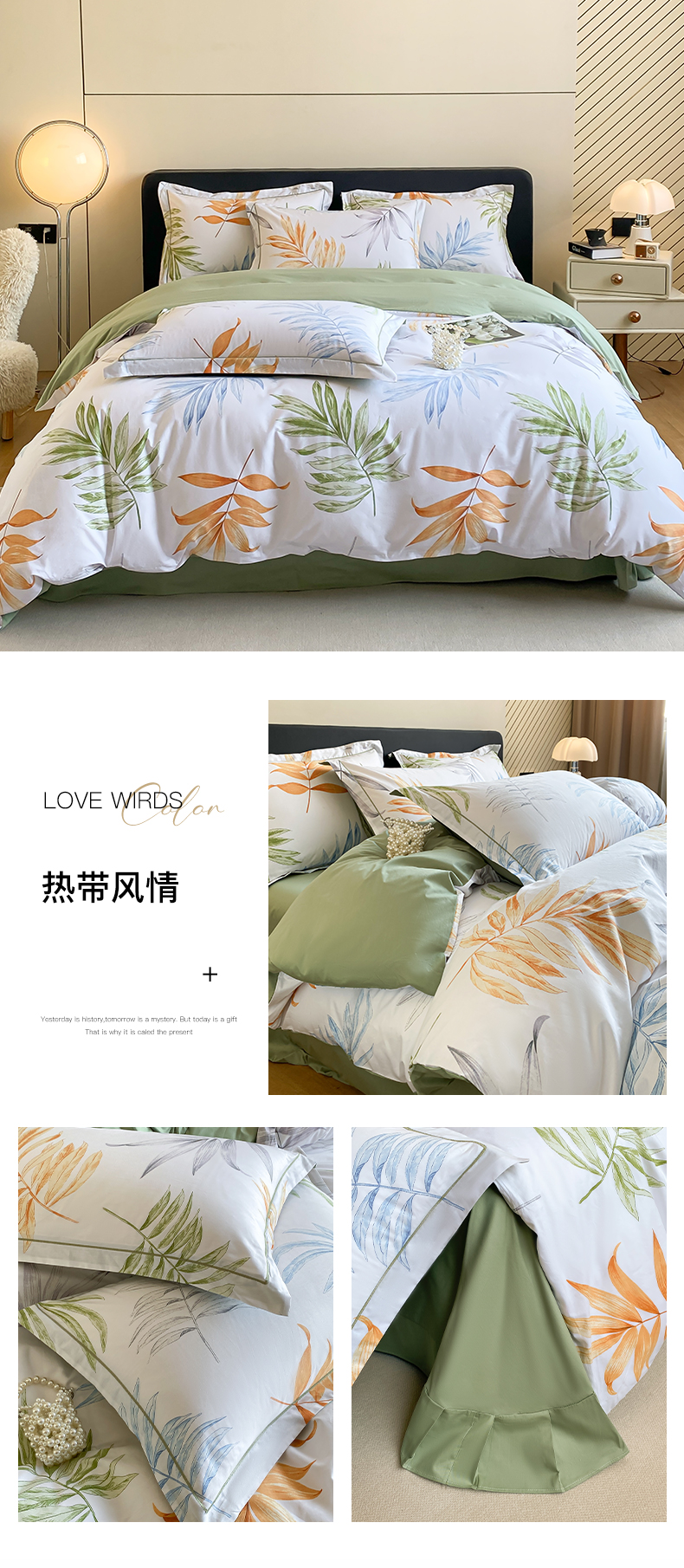 当前位置: 91家纺网 > 商品网购 > 床品套件 > 四件套 > 全棉普通四件套 > 格里芬家纺 2026新款全棉纯棉40S精梳棉13376印花四件套 叶叶私语