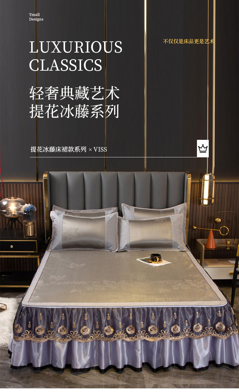 商品名称:能好家纺 2026春夏新款提花冰藤床裙款凉席席子 格调 灰绿