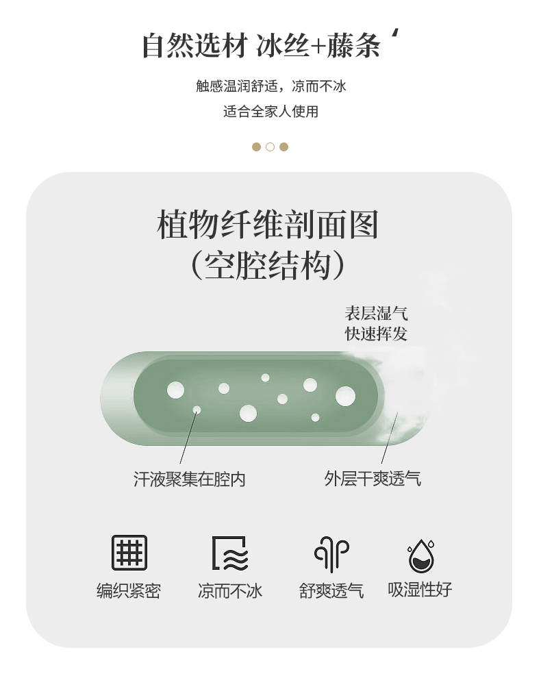 (总)能好家纺 2025新款三明治冰藤席凉席小米花系列,灰色,金色,绿色