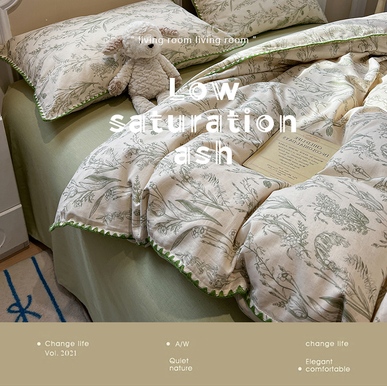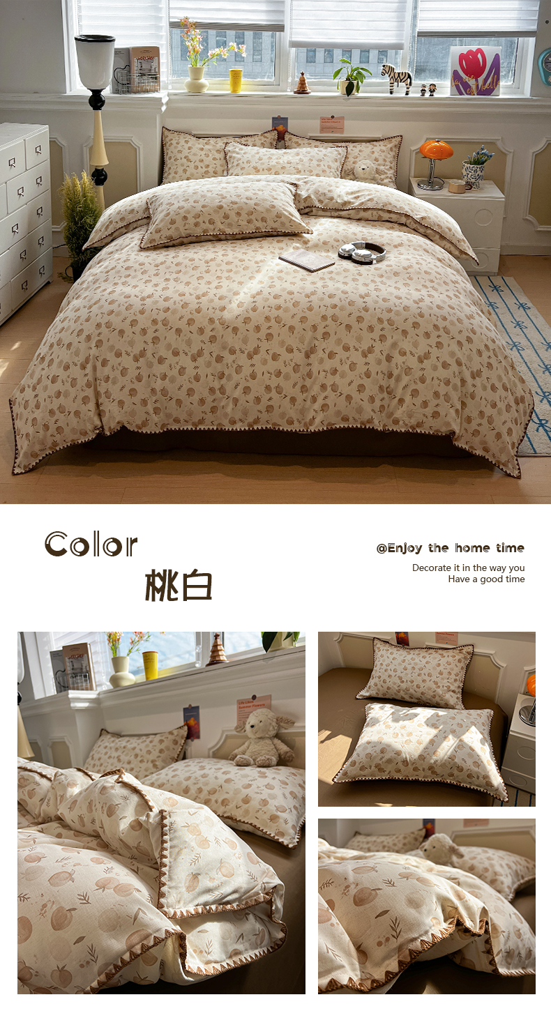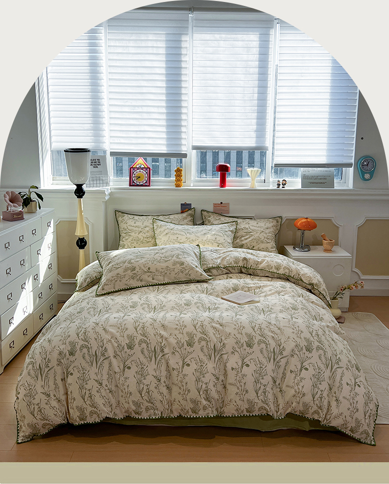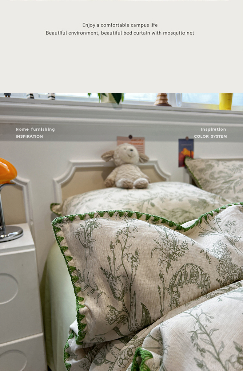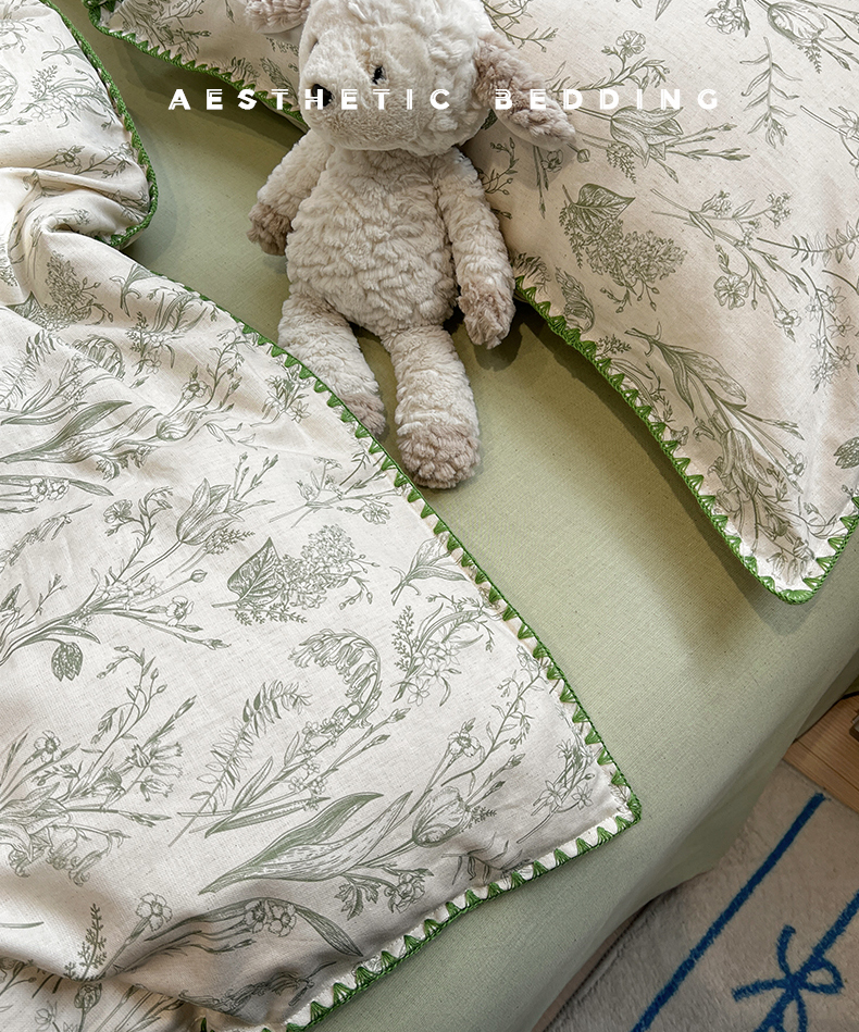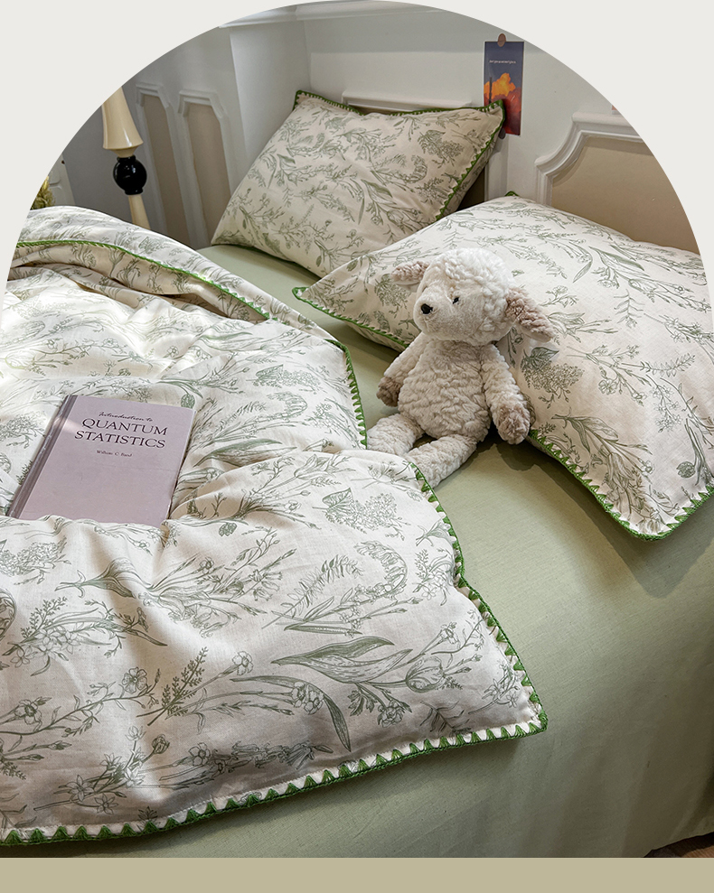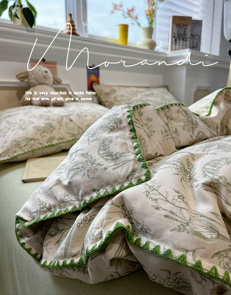 当前位置: 91家纺网 > 商品网购 > 床品套件 > 四件套 > 其它四件套 > 忆生活家纺 2026新款棉麻小清新三角针贝壳边四件套 清茉