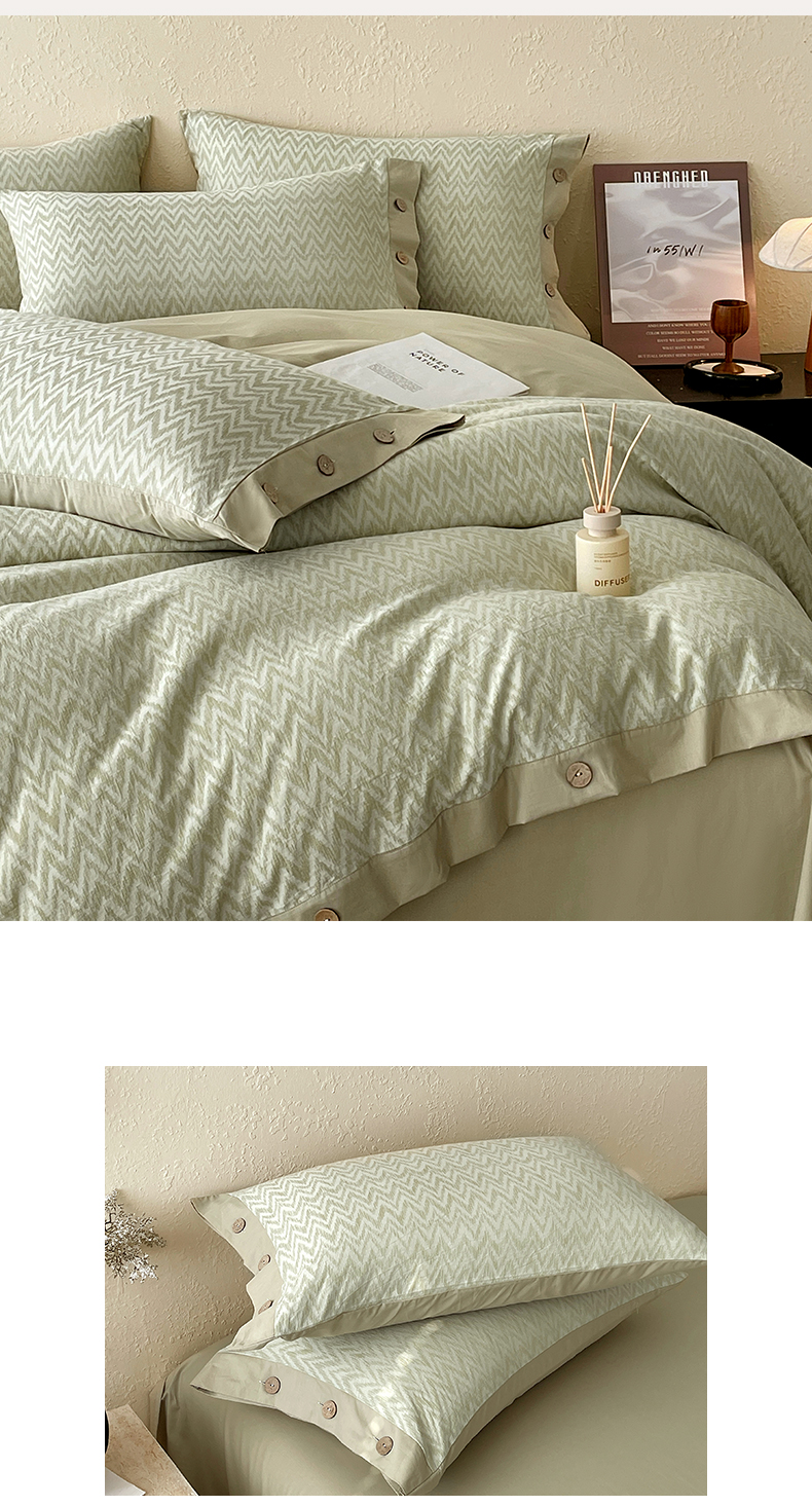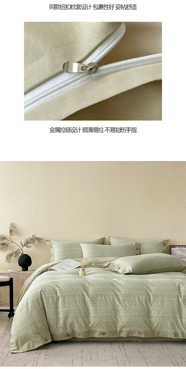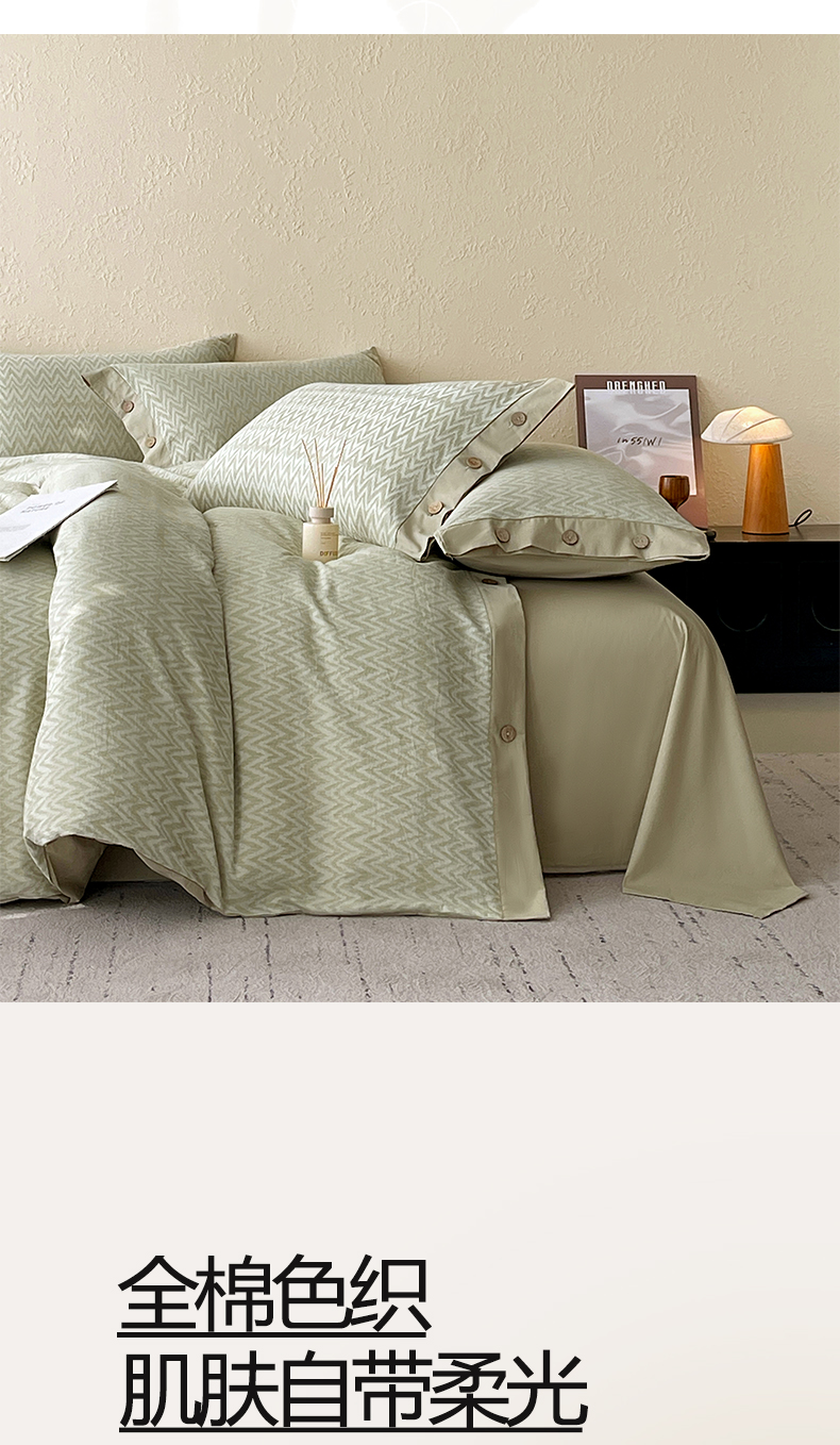商品名称:帅露家纺 2026新款A类全棉纯棉色织大提花纽扣款四件套 波浪-绿