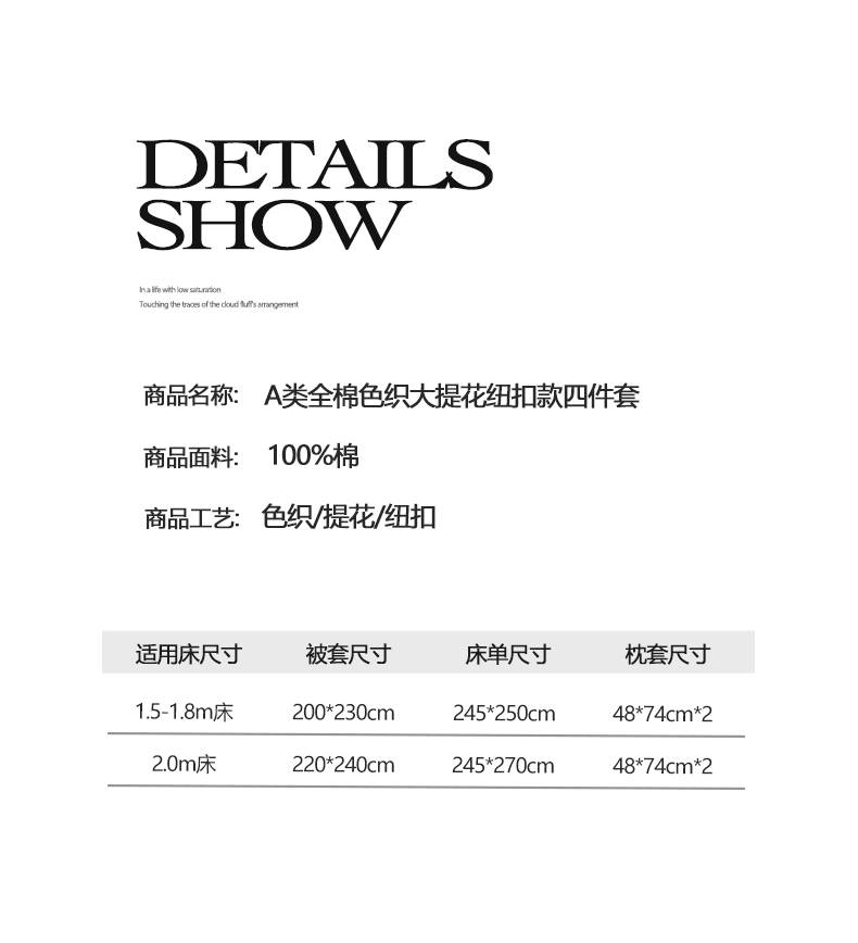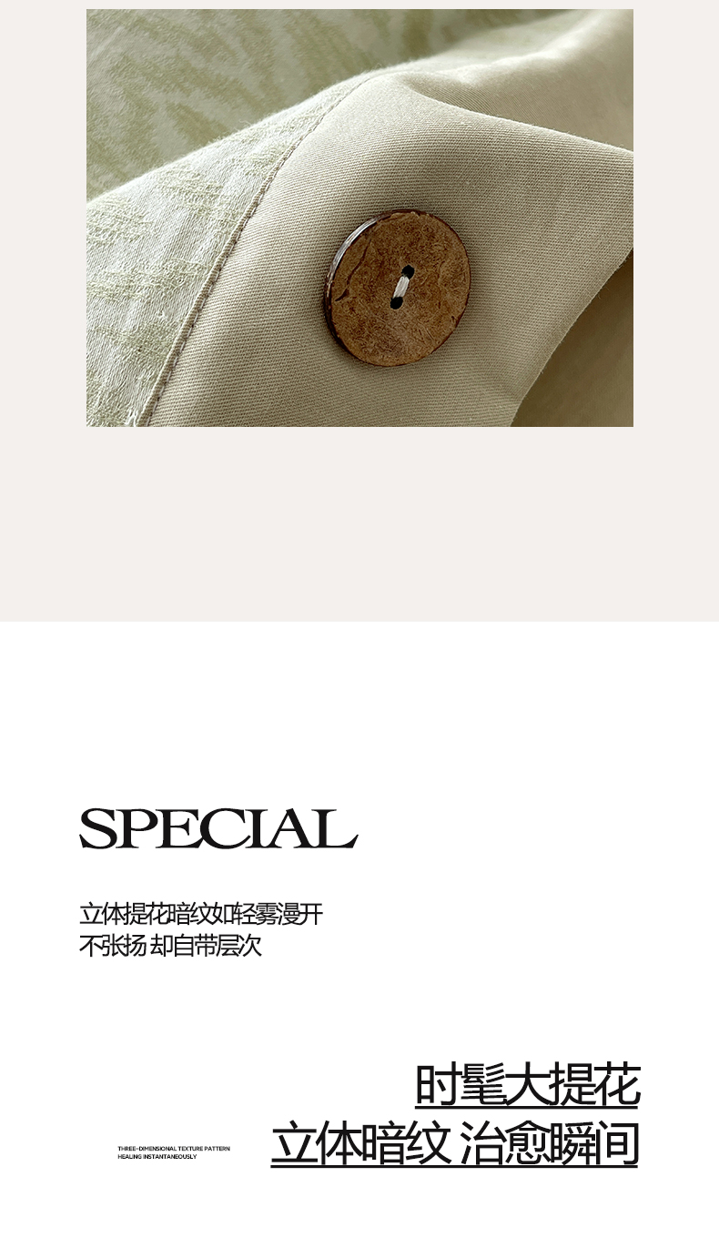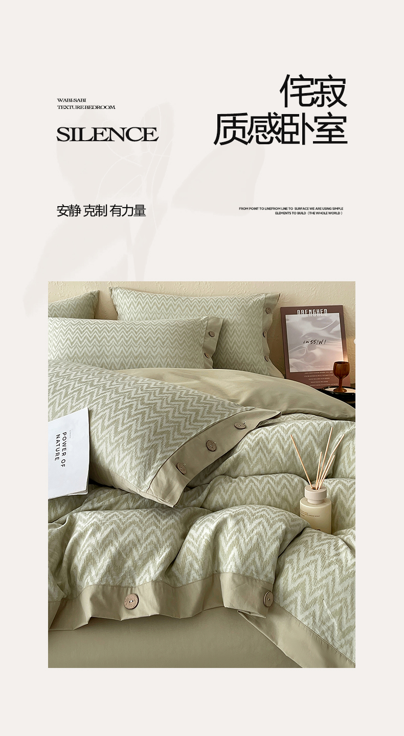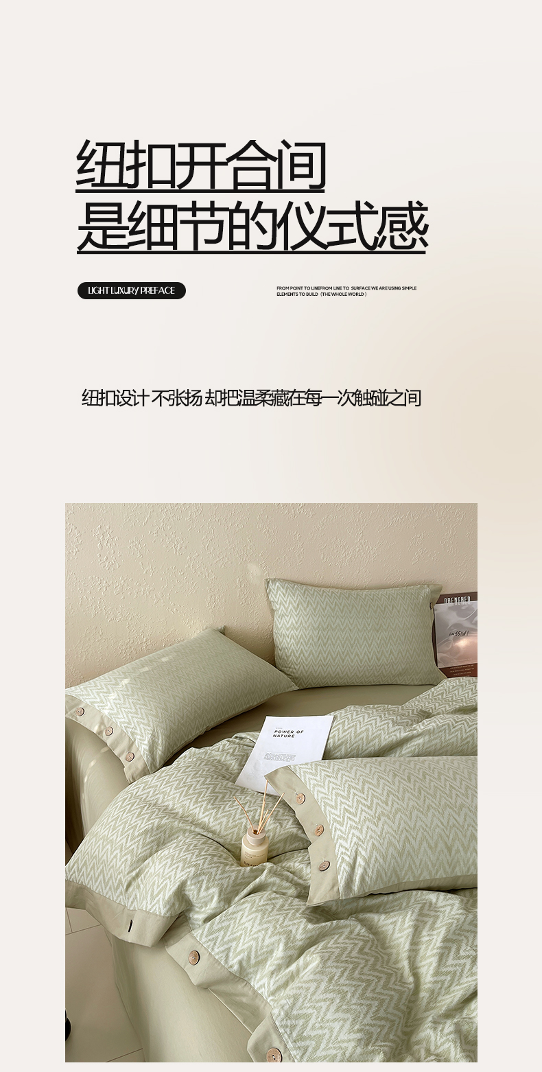 商品名称:帅露家纺 2026新款A类全棉纯棉色织大提花纽扣款四件套 波浪-绿
