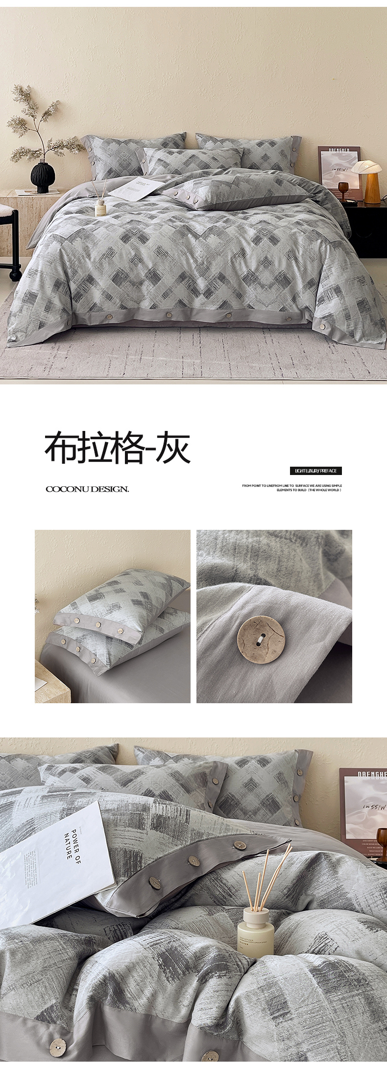 (总)帅露家纺 2025新款A类棉麻活性印染四件套系列,花间意境-红,花间意境-灰,花香满园-红,素锦-咖,香叶时代,映霜-灰,映霜-绿